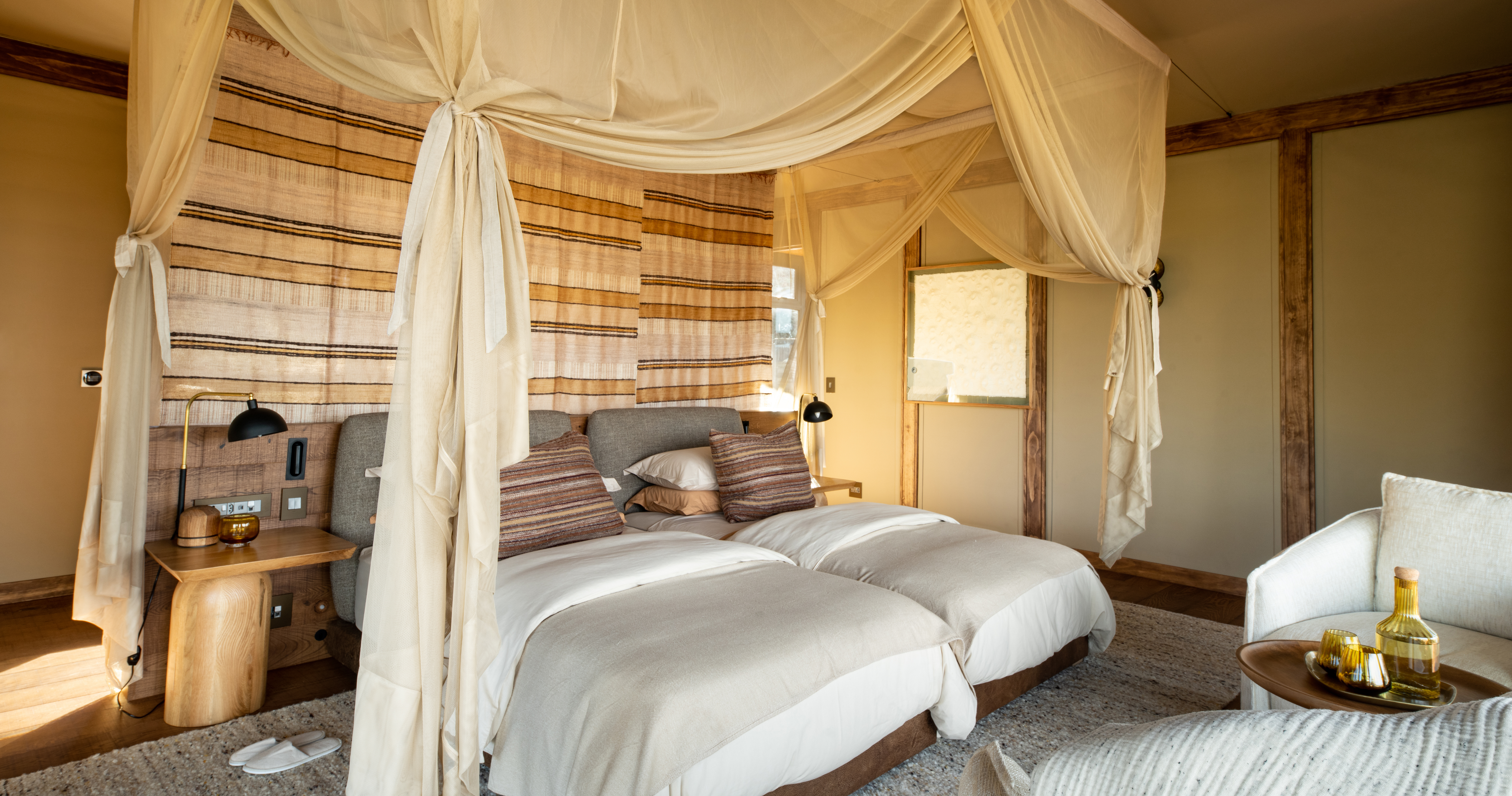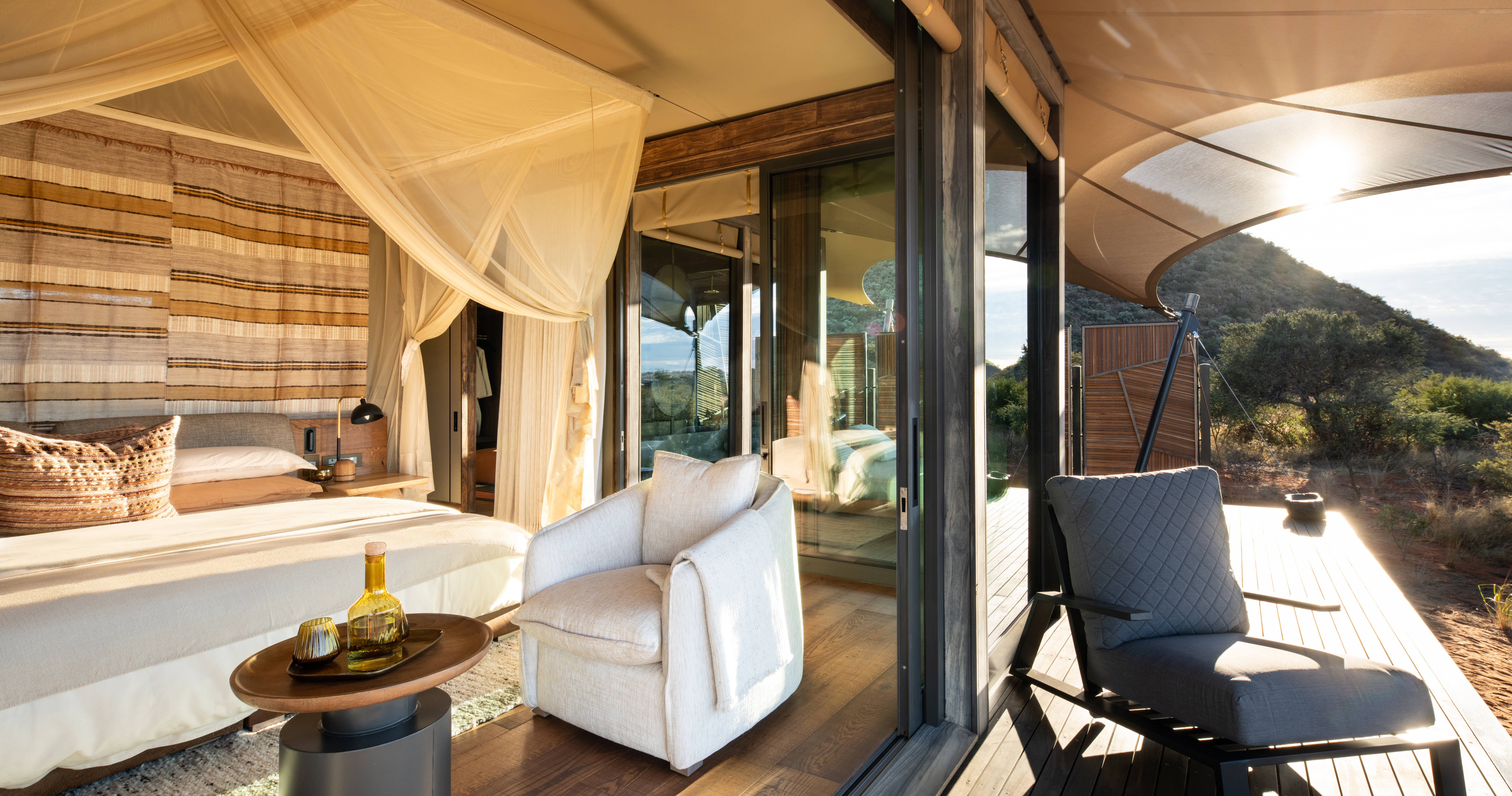 Loapi Tented Camp erbjuder en exklusiv och privat safariupplevelse i Tswalu Kalahari Reserve. Här finns endast sex lyxiga tält med plungepool, utomhusdusch och slående utsikt över omgivningen.