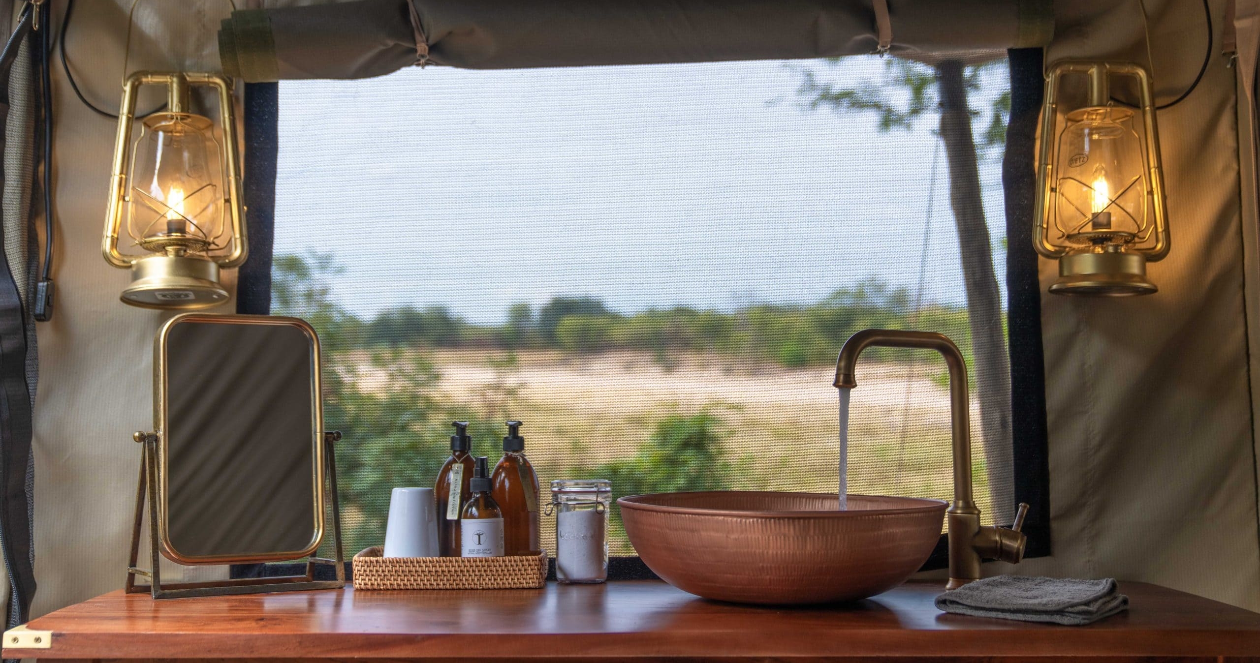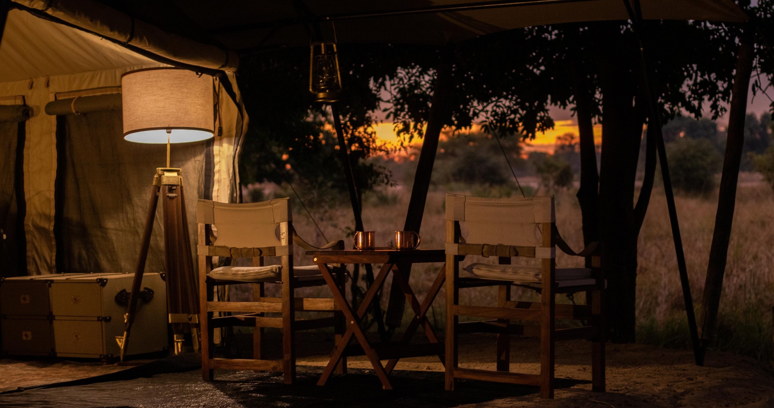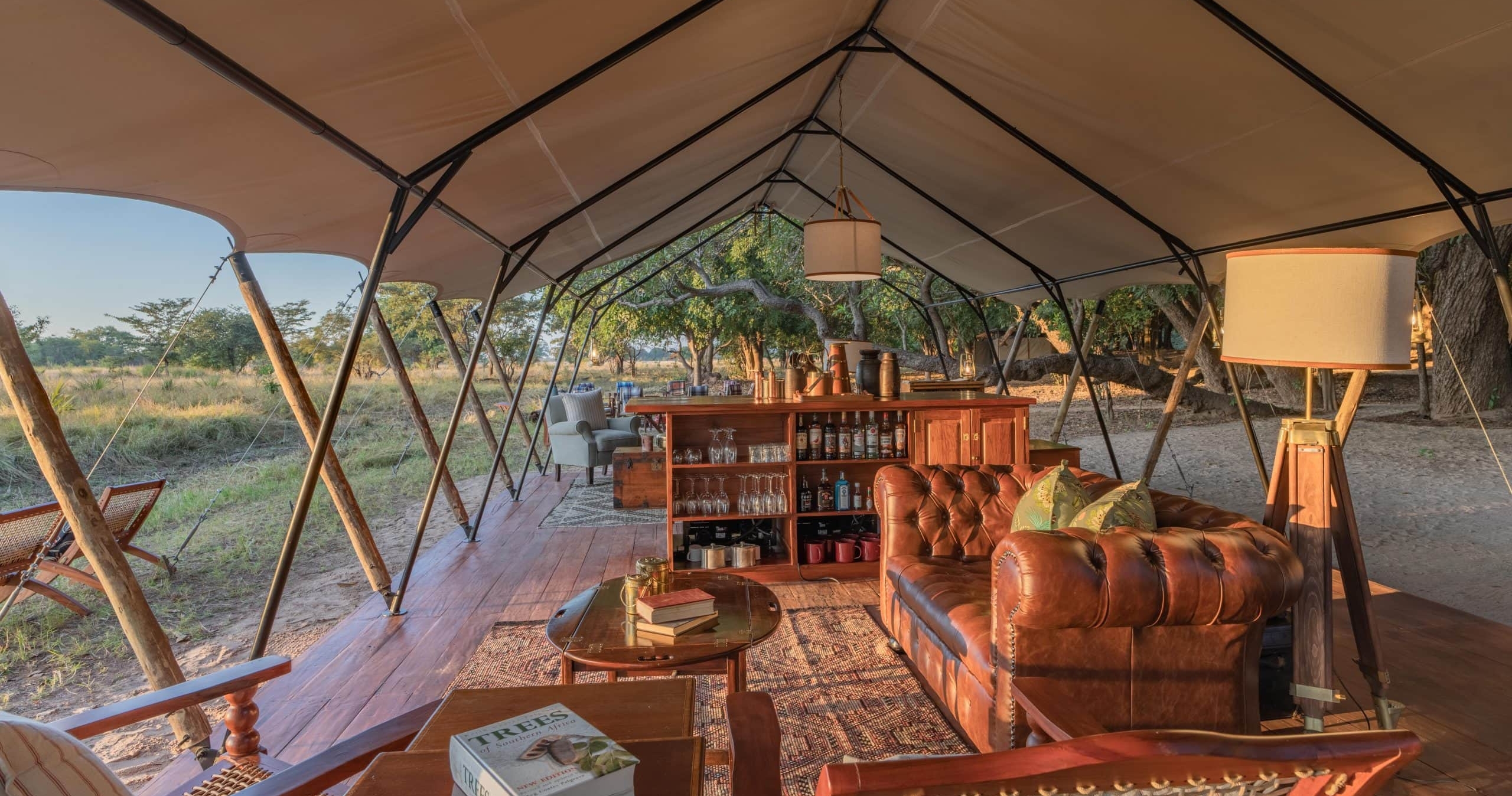 Här drivs belysningen av solenergi och rummen är utrustade med både inomhus- och utomhusduschar. Koppla av i baren efter en dag ute i vildmarken och håll utkik efter vilda djur som ofta söker sig till vattenhålen intill campen.