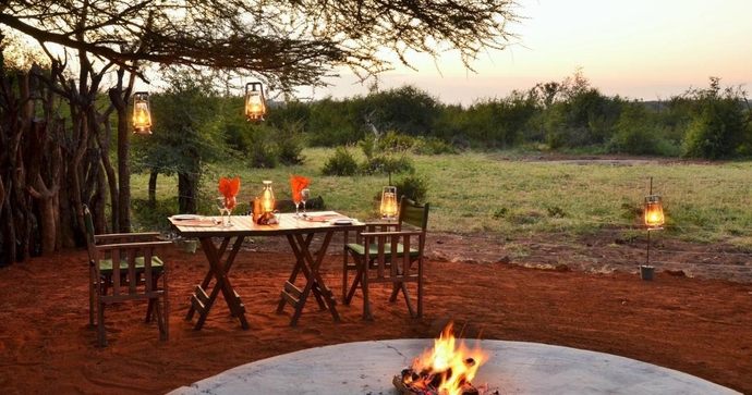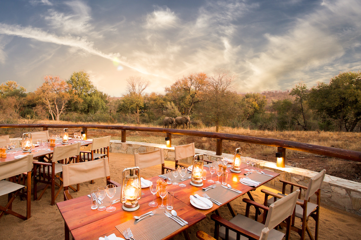Frukost, lunch och middag serveras under öppen himmel, och de stora, öppna terrasserna ger dig perfekt utsikt över det imponerande djurlivet – från majestätiska elefanter till eleganta geparder och färgsprakande fåglar.