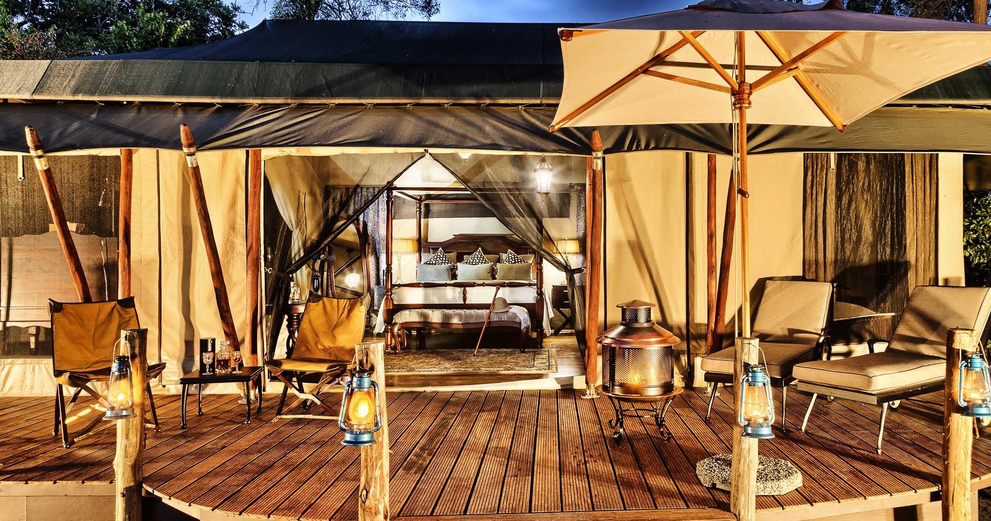 När du ligger i sängen kan du trycka på en knapp för att öppna taket på tältet. Det enda som då skiljer dig från den stora afrikanska stjärnhimlen är ett osynligt myggnät. Här erbjuds en lyxig och naturnära upplevelse av högsta kvalitet.