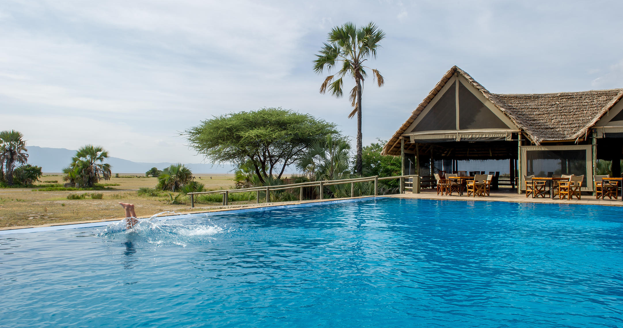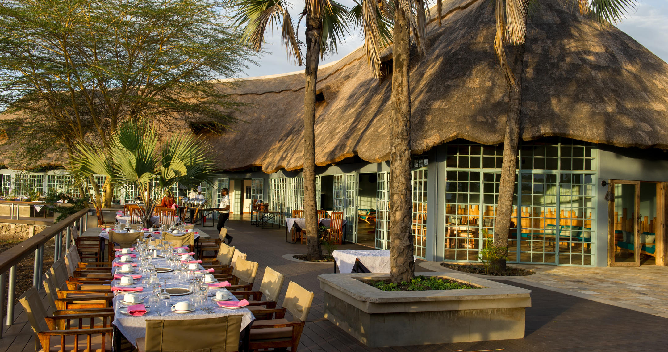 Njut av elegans mitt i naturen. Lodgen är upphöjd på en träplattform under ett halmtak där du kan njuta av måltider med en fantastisk 360-graders utsikt över Lake Burunge och den omgivande vildmarken.