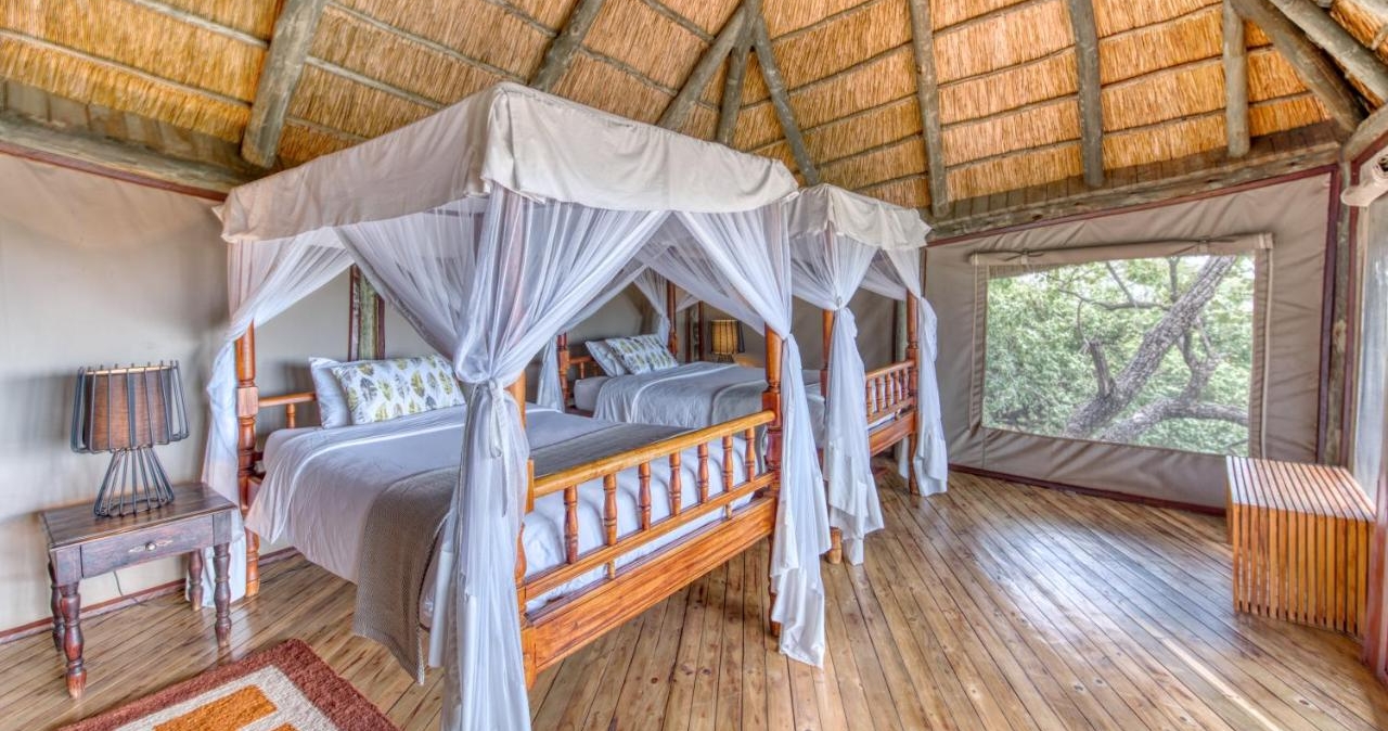 Campen består av ett fåtal rymliga, klassiska safaritält med riktiga sängar, eget badrum och utomhusdusch. Här bor du mitt i vildmarken, men med oväntad komfort. Du vaknar till naturens egna ljud och somnar under en glittrande stjärnhimmel – en autentisk och oförglömlig safariupplevelse, precis som den ska vara.