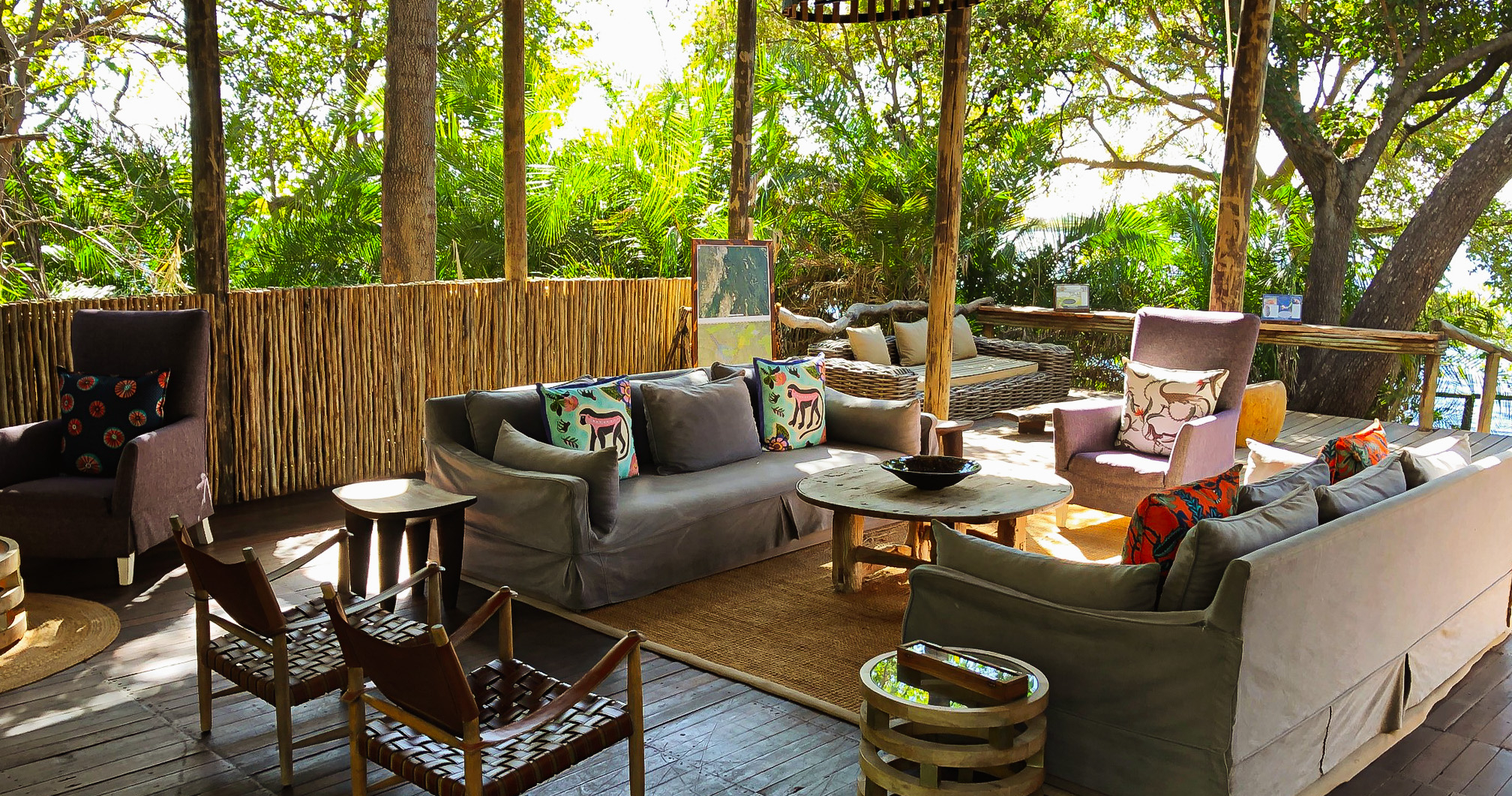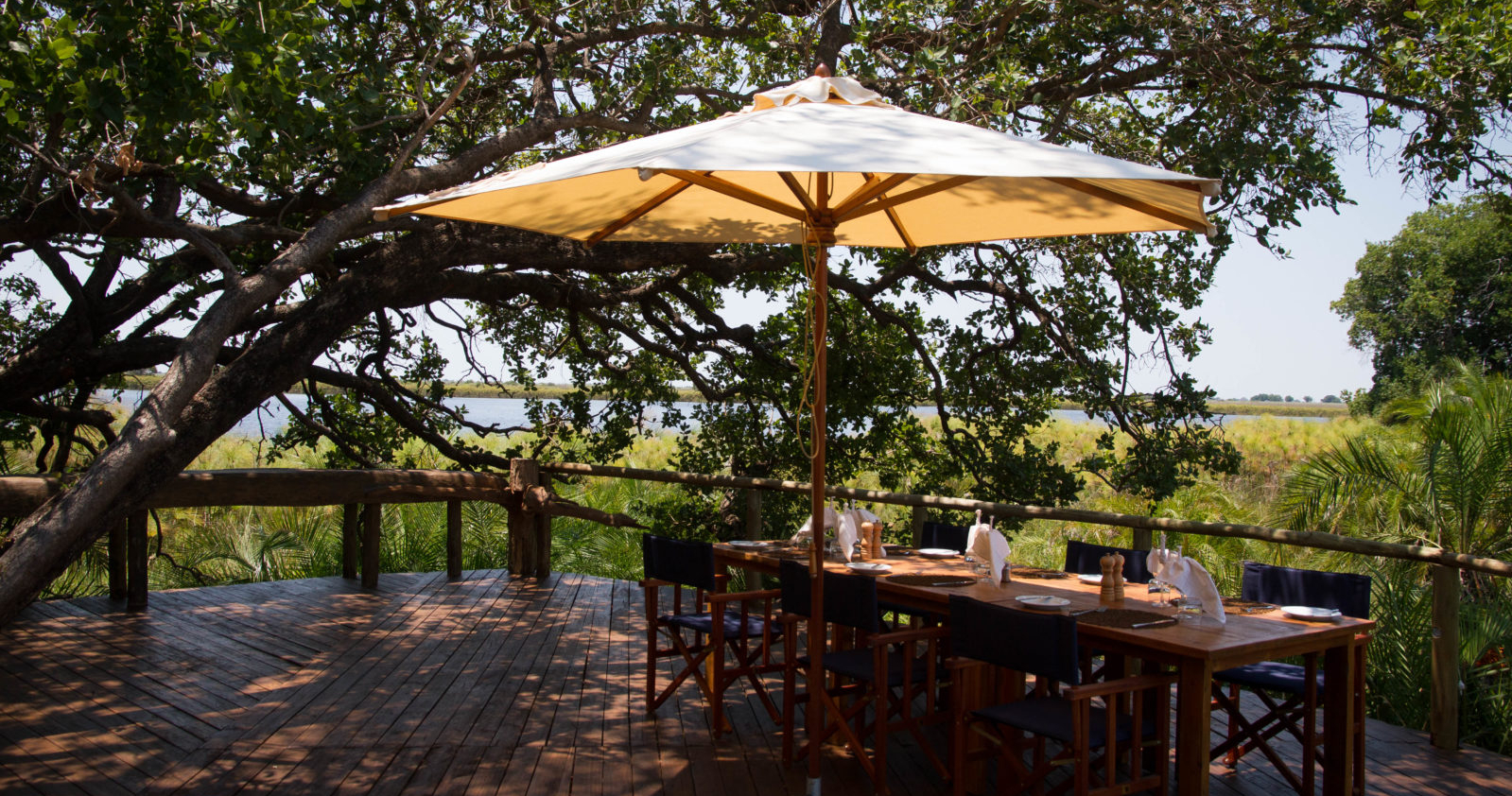 Här finns sexton safaritält på upphöjda däck, var och en med egen veranda längs flodbankens skogsbryn. Varje tält har en veranda samt ett badrum med utomhusdusch. Huvudbyggnaden har bar, pool och en stor terrass som erbjuder härlig utsikt över Boro-floden och Chiefs Island.