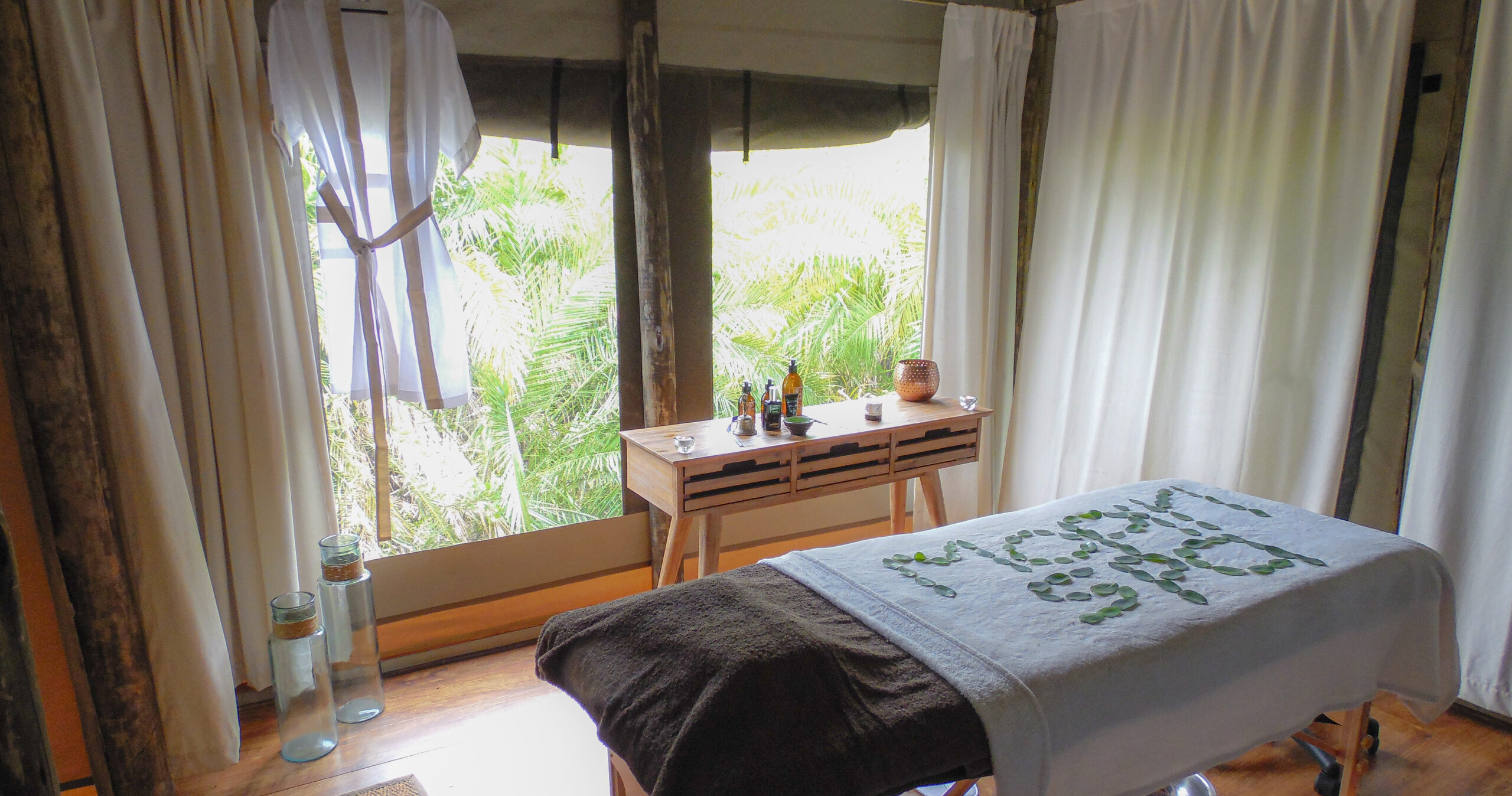 Lodgen genomgår en omfattande renovering och öppnar igen den 1 maj 2024. En av höjdpunkterna i renoveringen är lanseringen av lodgens nya spa, placerat över vattnet i Nxamaserikanalen, där du kan njuta av spabehandlingar till ljudet av fågelsång.