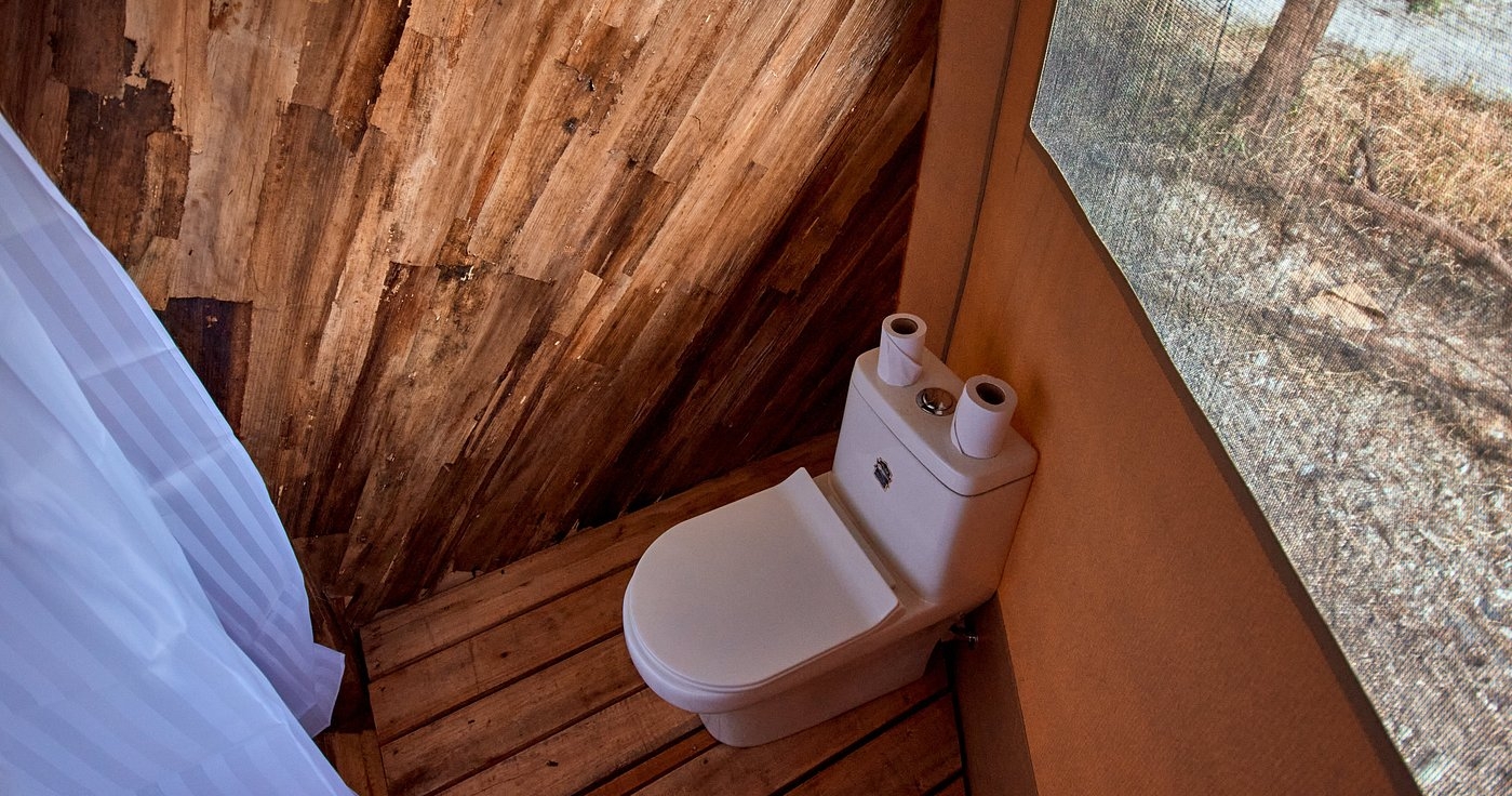 De rymliga tälten står på upphöjda träplattformar och har privat veranda med utsikt över savannen. Tälten är utrustade med badrum med dubbla handfat, toalett samt både en inomhusdusch och en unik utomhusdusch, där du bokstavligen kan duscha under den afrikanska stjärnhimlen! Här kombineras komfort med äkta naturupplevelse.