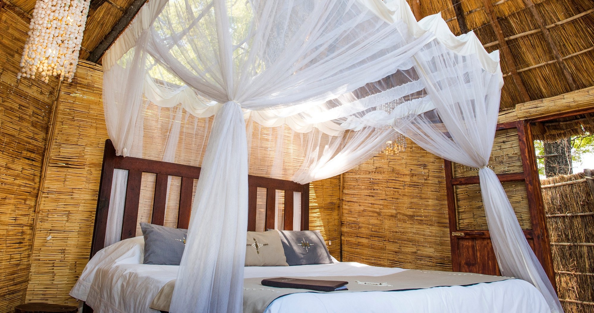 Boendet består av fyra lyxiga tältstugor, upphöjda på trädäck, vilket ger en fantastisk utsikt över lagunen och dess vilda djur. Varje tält har privata verandor, där du kan njuta av landskapet i fullständig avskildhet.