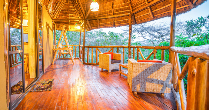 Vandringen upp till rummen är en upplevelse i sig själv, med välunderhållna gångstigar och vilda träd. Den rika naturen och den frodiga omgivningen tillsammans med fågelsången är en upplevelse för livet. Alla stugor är vackert placerade i landskapet och har utsikt över Lake Kikorongo, Lake George och den enastående naturen i Queen Elizabeth National Park. Varje stuga erbjuder möjlighet till avskildhet så att varje gäst kan koppla av i sitt eget lilla paradis.
