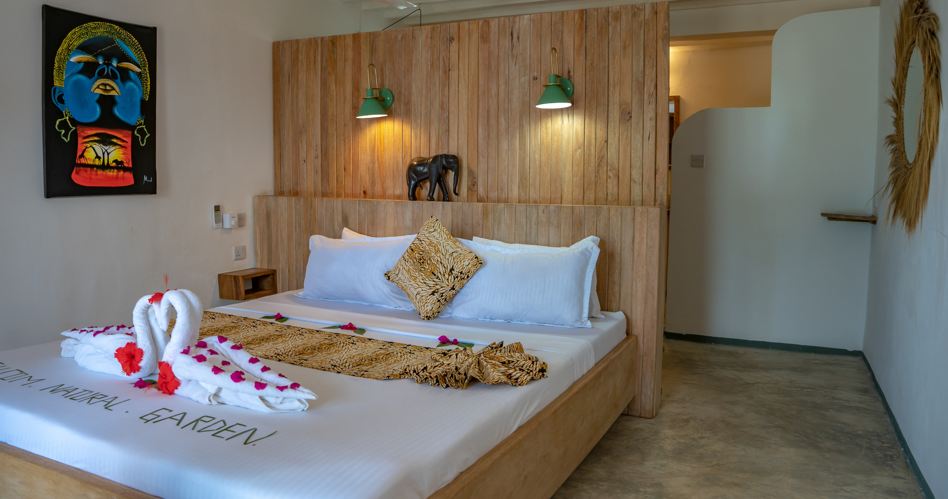 Att promenera längs byns dammiga stigar ger en autentisk upplevelse av den lokala kulturen, där vänliga invånare gärna delar med sig av ett leende eller några ord på swahili. Även om ni inte talar samma språk, kan en vänlig gest eller ett leende riva alla murar här. Hotellet erbjuder gratis transfer till sina systerhotell vid stranden – men det tar bara tio minuter att promenera ner, om du hellre föredrar det.