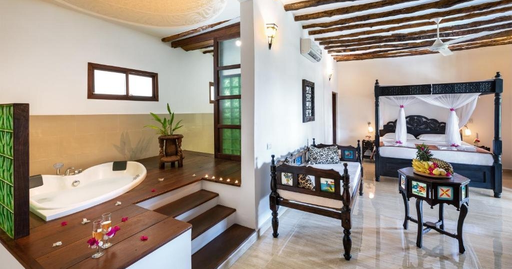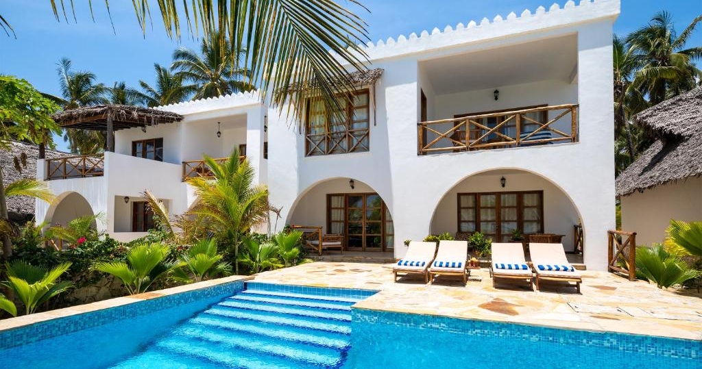 De erbjuder exklusiva villor med privat pool, rymliga uteplatser och modern inredning i zanzibariska influenser. Ett prisbelönt spa, en gourmetrestaurang med lokala och internationella rätter, samt en takbar med panoramautsikt över Indiska oceanen.