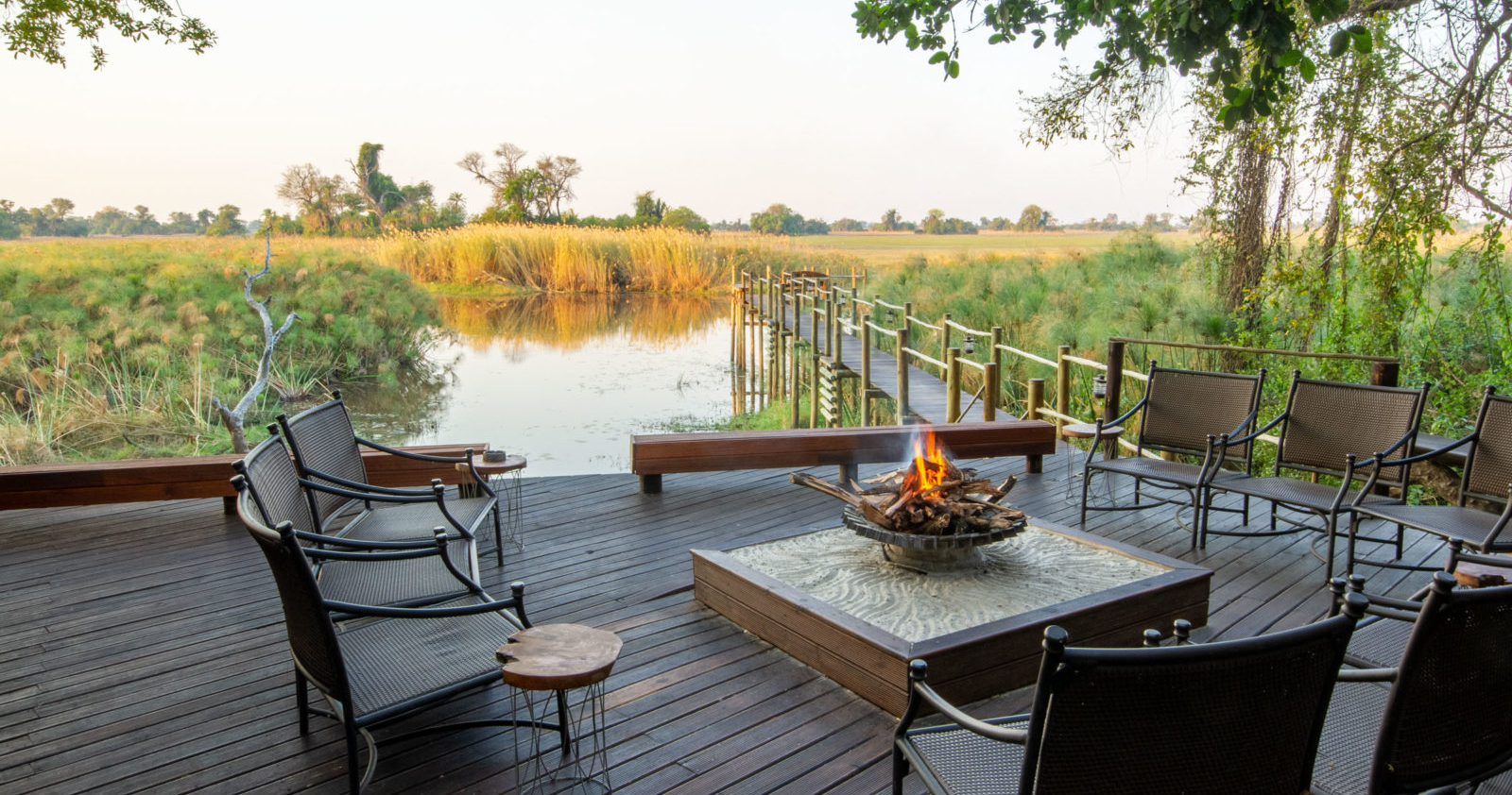 Utforska Okavangodeltat eller luta dig tillbaka och njut av utsikten och lugnet, antingen från poolen eller från din privata balkong. Kvällarna avslutas med middag under stjärnhimlen och vid den öppna elden. En vistelse du sent kommer glömma.