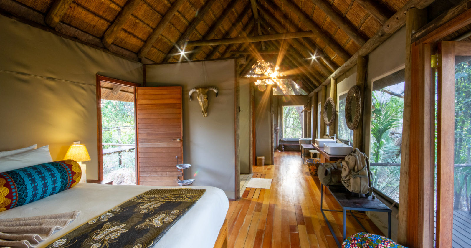 Lodgen genomgår en omfattande renovering och öppnar igen den 1 maj 2024. En av höjdpunkterna i renoveringen är lanseringen av lodgens nya spa, placerat över vattnet i Nxamaserikanalen, där du kan njuta av spabehandlingar till ljudet av fågelsång.