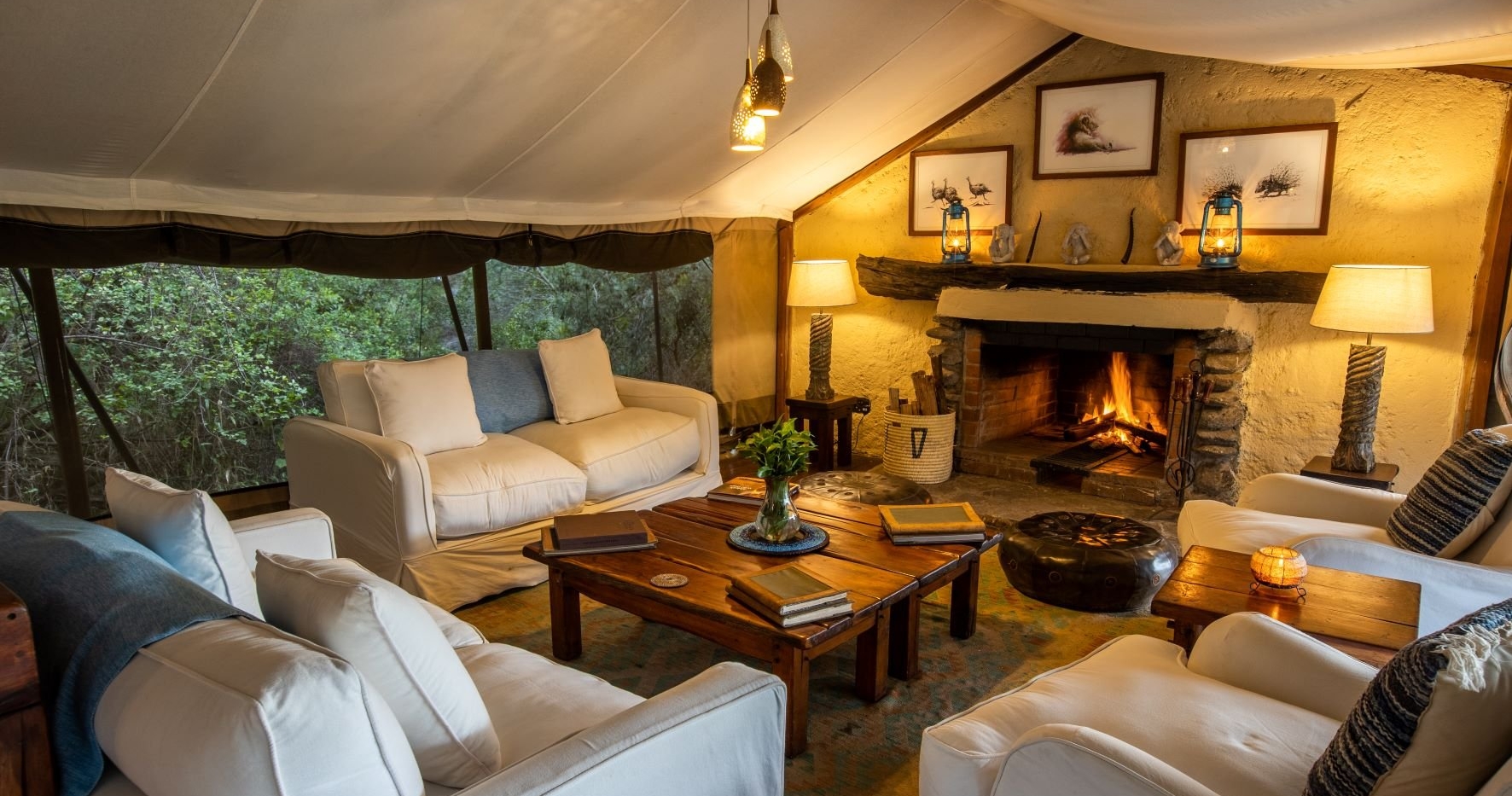 Med en stilren och diskret elegans, erbjuder de sju tälten komfort med bekväma sängar och fullt utrustade badrum. De gemensamma utrymmena erbjuder avkoppling i form av ett spa och goda måltider.