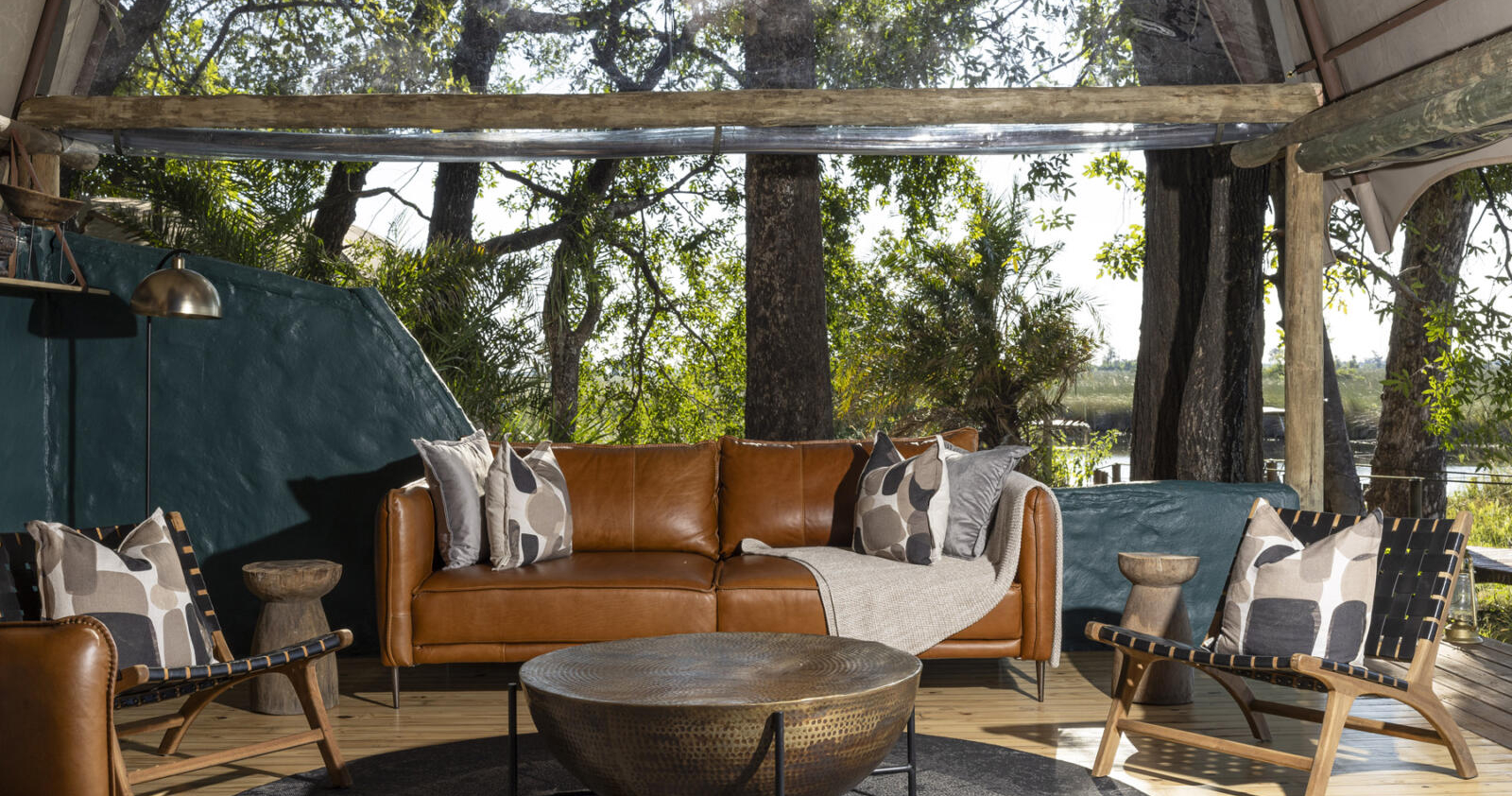 Lagoon Camp, beläget vid Kwando-flodens strand, erbjuder en intim upplevelse med endast nio tält, alla utrustade med badrum, inom- och utomhusduschar och privat terrass med utsikt över floden.