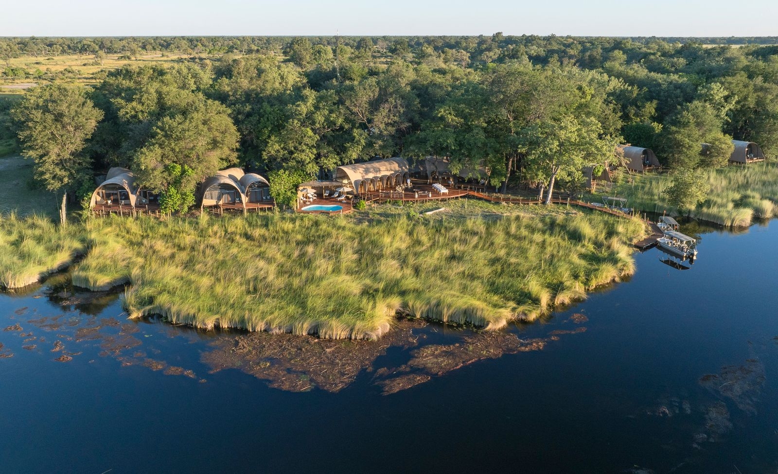 Campen består av tio autentiska safaritält, vilka alla är individuellt utformade och perfekt placerade för att maximera utsikten över omgivningen. Efter en dag i deltat finns det inget bättre än att glida ner i infinitypoolen, omgiven av vildmarkens ljud och vackra vyer.