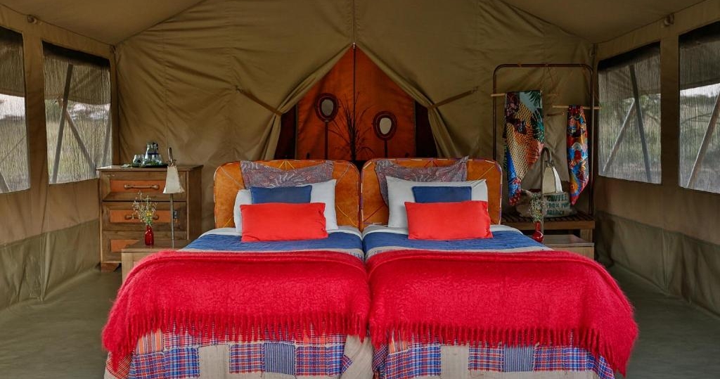 Här finns endast 10 rymliga och komfortabelt inredda tält vilket bidrar till den intima och lyxiga känslan. Varje tält är smakfullt dekorerat med afrikanskt tema. I campens restaurangtält serveras både internationella rätter och lokala delikatesser, tillagade av en erfaren kock.