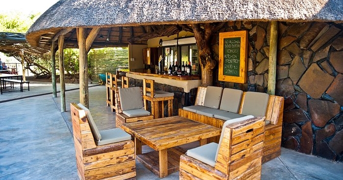 Precis som ett gammalt afrikanskt kungarike är Damara Mopane Lodge konstruerad i en halvcirkel av sammanlänkade gångar som leder till en lyxig swimmingpool i mitten. Innovativt designade har varje stuga sin egen lilla trädgård med grönsaker. Ljusgula solrosor tittar fram mellan grön spenat, rödbetor och excentriska fågelskrämmor, vilket skapar en förtrollande lodgemiljö. Labyrinten av gångar leder till ett stort och glatt centrum. En fräsch grönska lyser upp interiören, liksom de hjärtformade mopane-bladen finns runt hela lodgen.