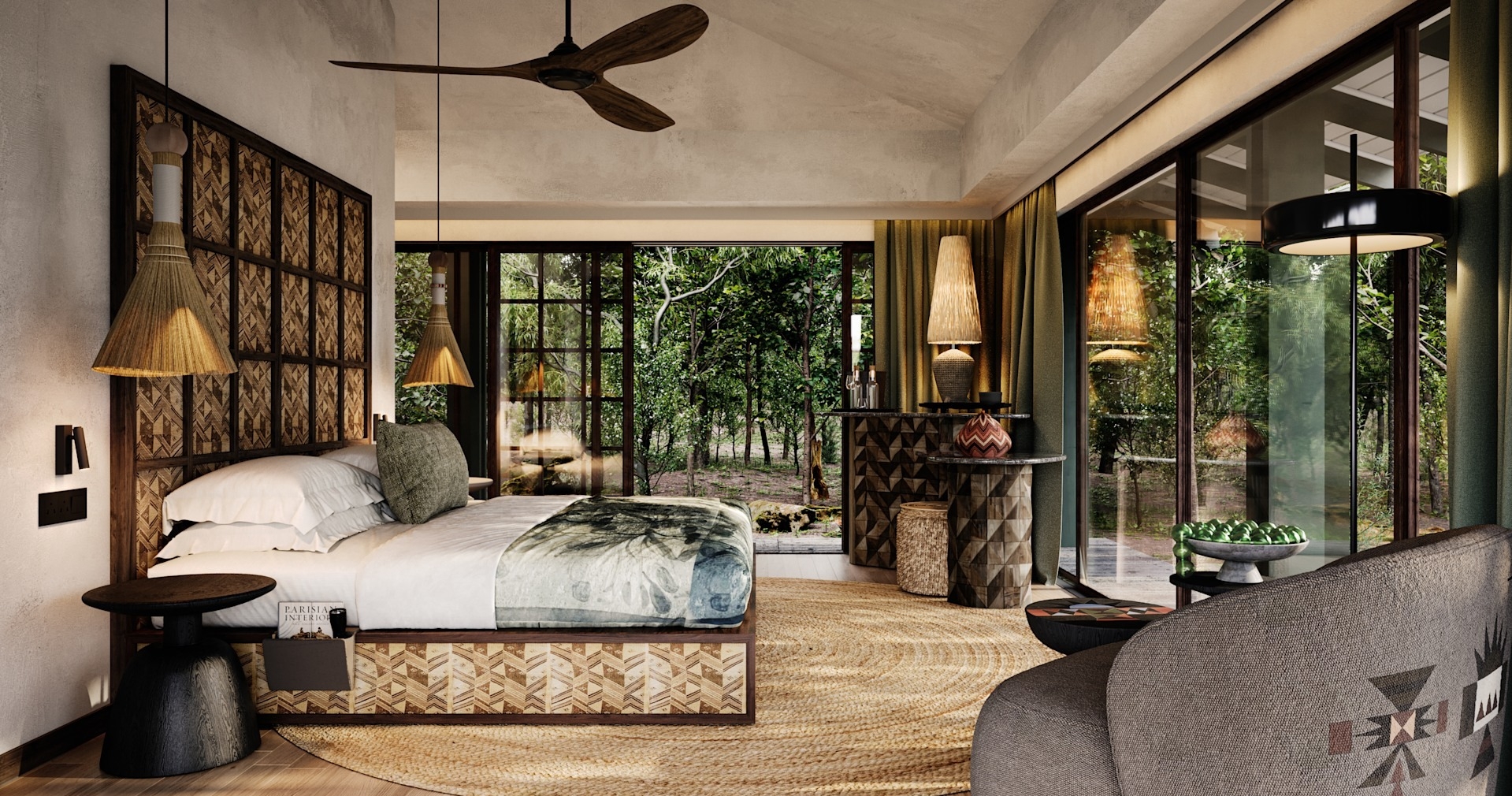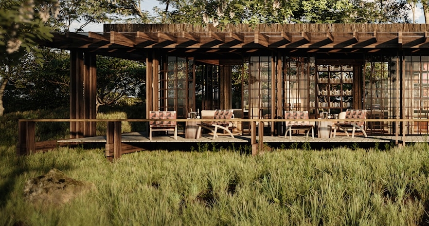 Här finns gott om naturliga platser för avkoppling och sviterna är utrustade med rymliga badrum och badkar. Den moderna och rustika träinredningen samspelar med lodgens omgivning och skapar en unik och rofylld atmosfär, i nära symbios med naturen. Den runda poolen är inbäddad bland grönskande träd, allt för att erbjuda dig en äkta och njutbar vildmarksupplevelse.
