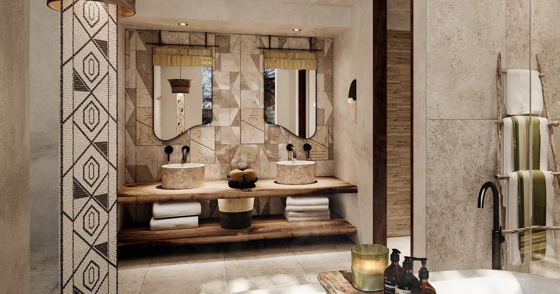 Varje tält har en lounge, inomhus- och utomhusdusch, badkar, privat däck med pool och vidsträckt utsikt över Msunduze-floden. Tälten kan öppnas på tre sidor, vilket skapar nära kontakt med naturen. Mitt i campen finns loungedel, bar, boma (eldplats) och ytor för gemenskap och avkoppling.