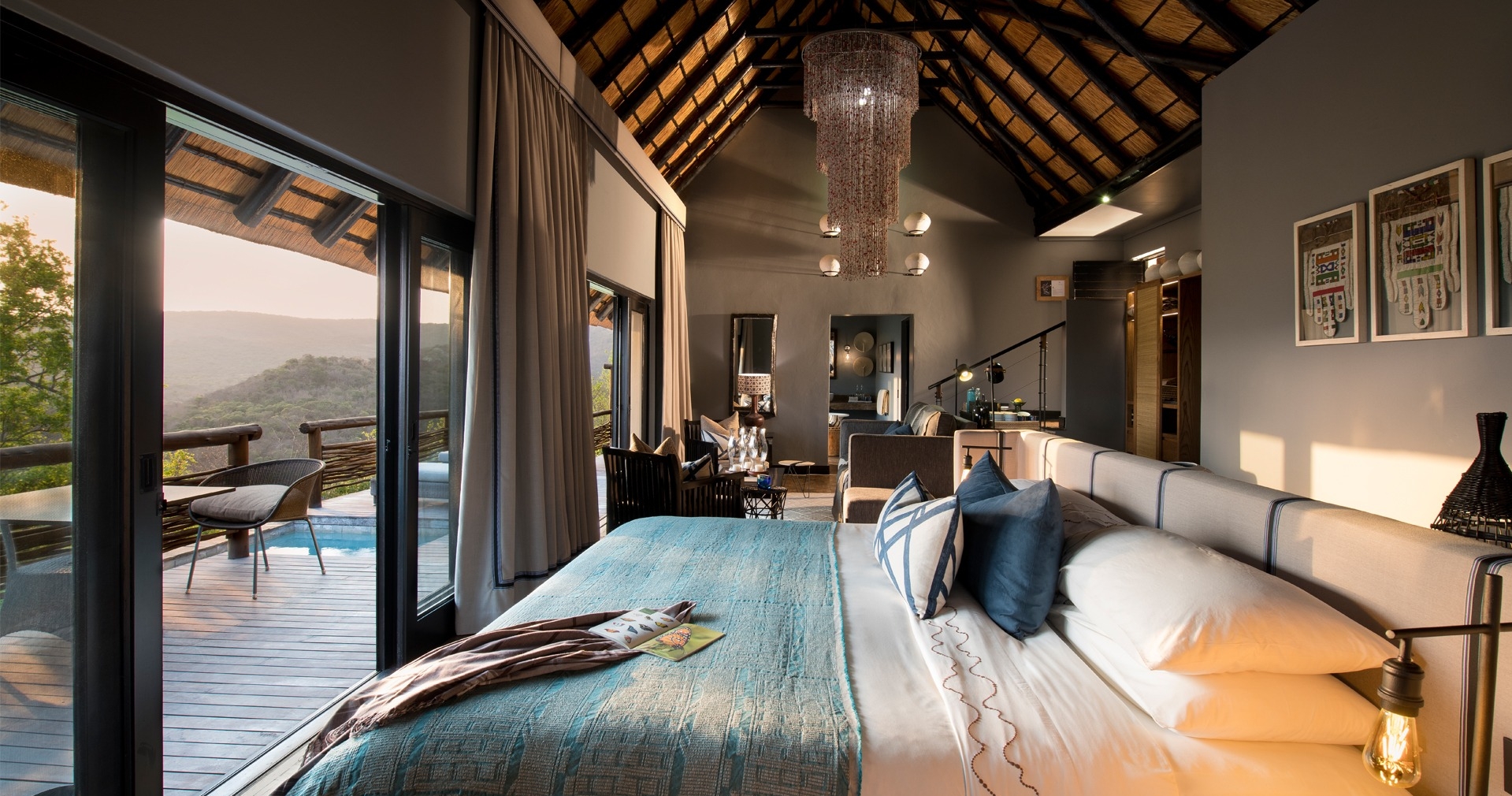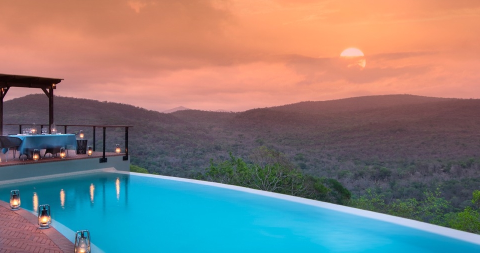 Thanda Safari Lodge, belägen i det 14 000 hektar stora och privata Big Five naturreservatet Thanda i norra KwaZulu-Natal. Denna exklusiva lodge erbjuder nio sviter som alla är utrustade med rymliga vardagsrum, badrum, uppvärmda pooler och privat terrass med utsikt över naturreservatet.