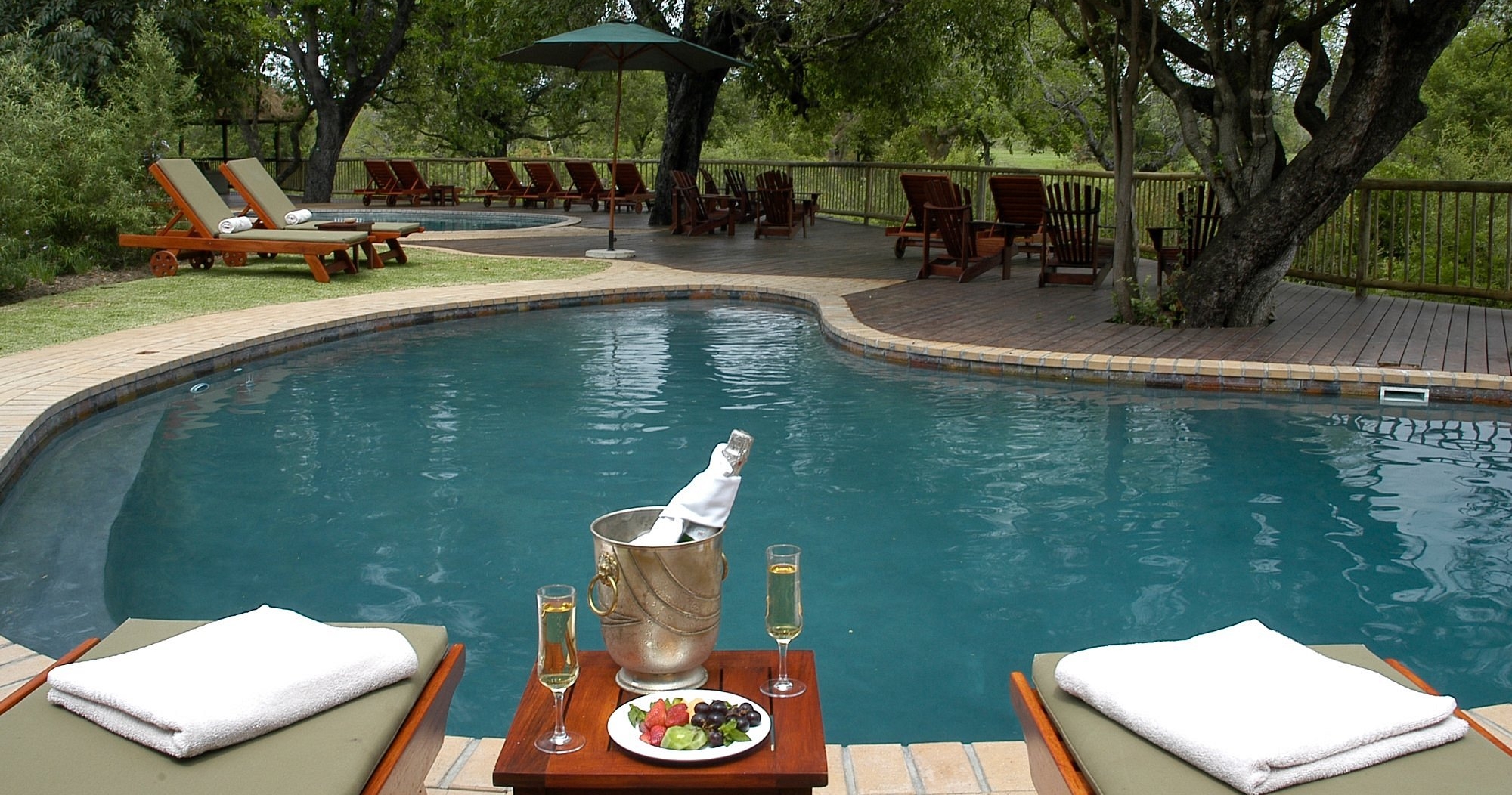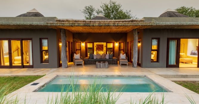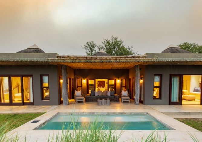 Från sviternas terrass kan du blicka ut över N’waswitsontso River och vidsträckta grässlätter. Lodgen har faciliteter som pool och spabehandlingar. Ett bra alternativ för dig som reser med familjen då barn över åtta år är välkomna att följa med.