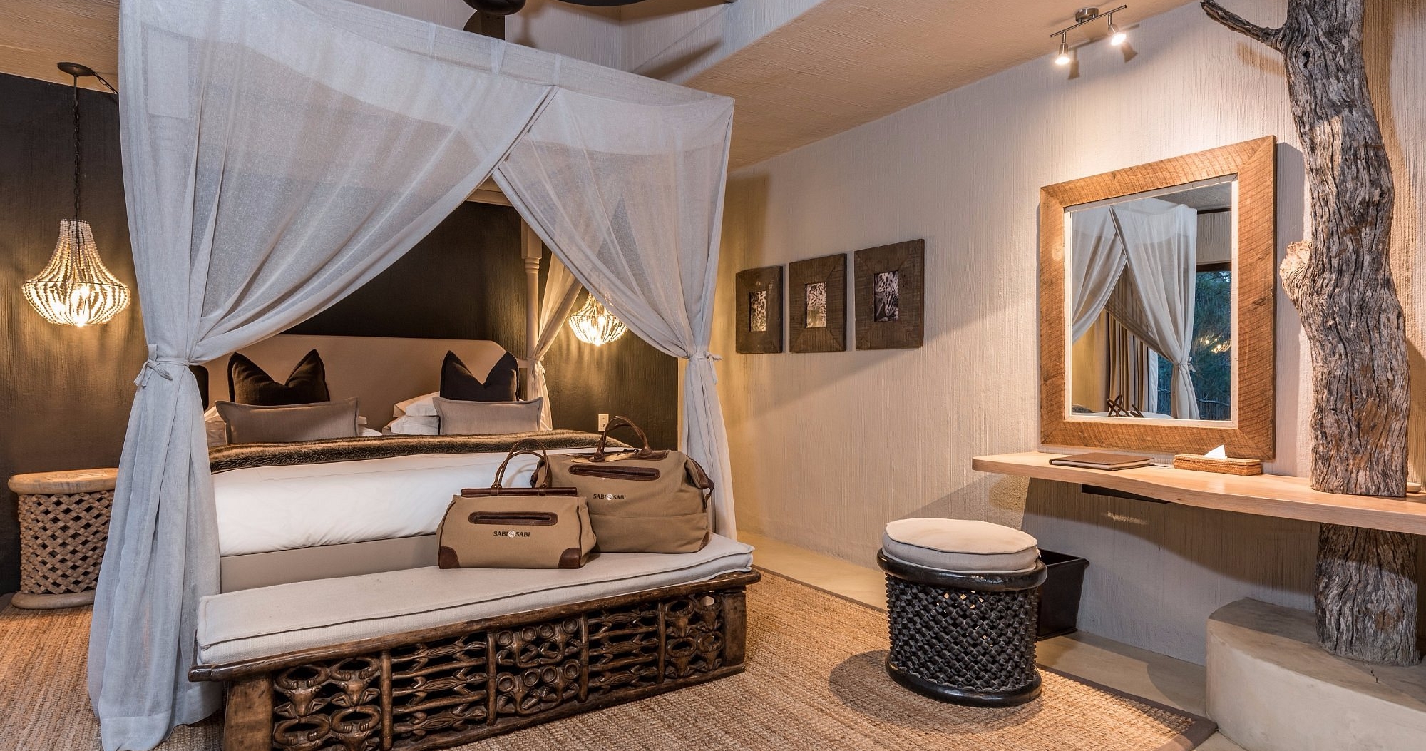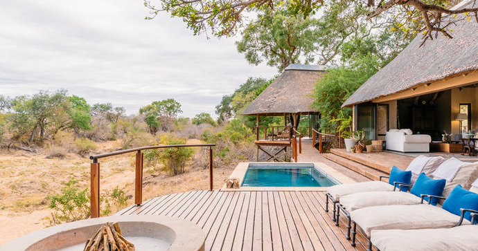 Varje svit har modern afrikansk design, fullt utrustat badrum, privat terrass med uppvärmd spa-bad och utsikt över flodbädden. Mellan safariturerna finns det möjlighet att koppla av vid poolen eller ge sig ut på promenader i omgivningen. Det här är ett perfekt boende för dig som söker en exklusiv och avskild safariupplevelse.