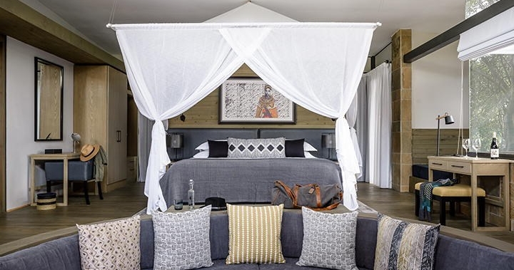När du ligger i sängen kan du trycka på en knapp för att öppna taket på tältet. Det enda som då skiljer dig från den stora afrikanska stjärnhimlen är ett osynligt myggnät. Här erbjuds en lyxig och naturnära upplevelse av högsta kvalitet.