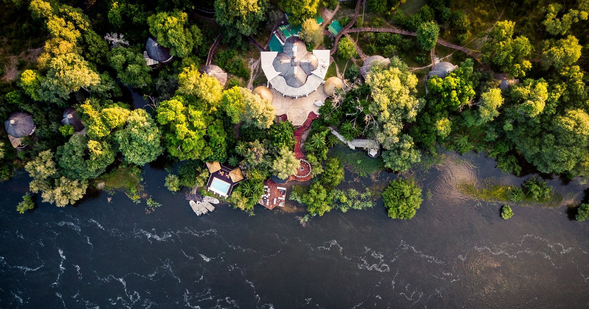 Thorntree River Lodge erbjuder en exklusiv upplevelse vid den majestätiska Zambezifloden, inom Mosi-Oa-Tunya National Park. Denna lodge är utformad för att erbjuda en lyxig och avkopplande bas medan du utforskar områdets rika natur och kultur. Med endast 12 rum kan Thorntree River Lodge husera upp till 24 gäster, vilket skapar en intim och personlig atmosfär.