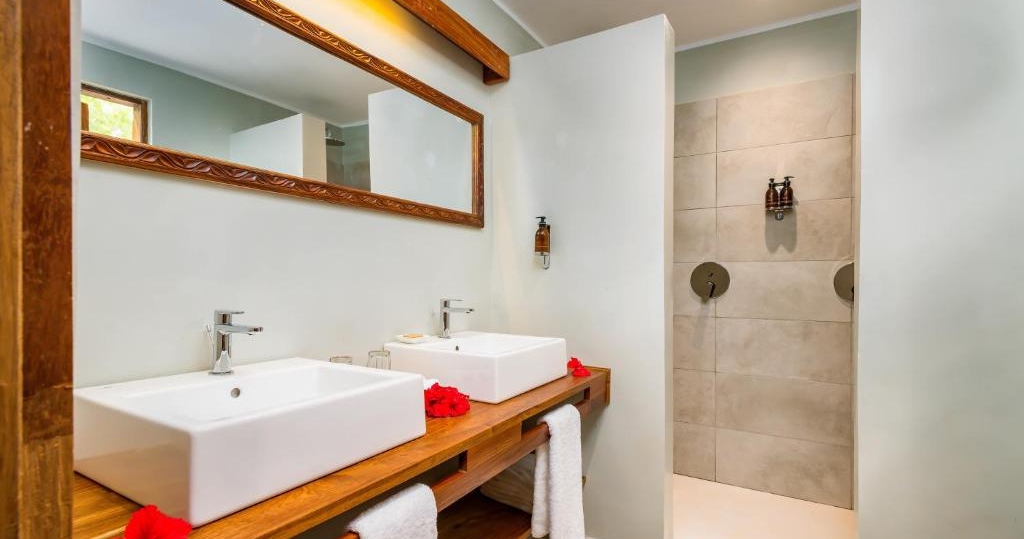 I baren kan du njuta av kalla drycker, spela spel eller lyssna på musik medan du slappnar av i en soffa eller hängmatta. Hotellet har en liten privat strand samt en stor terrass vid havet.