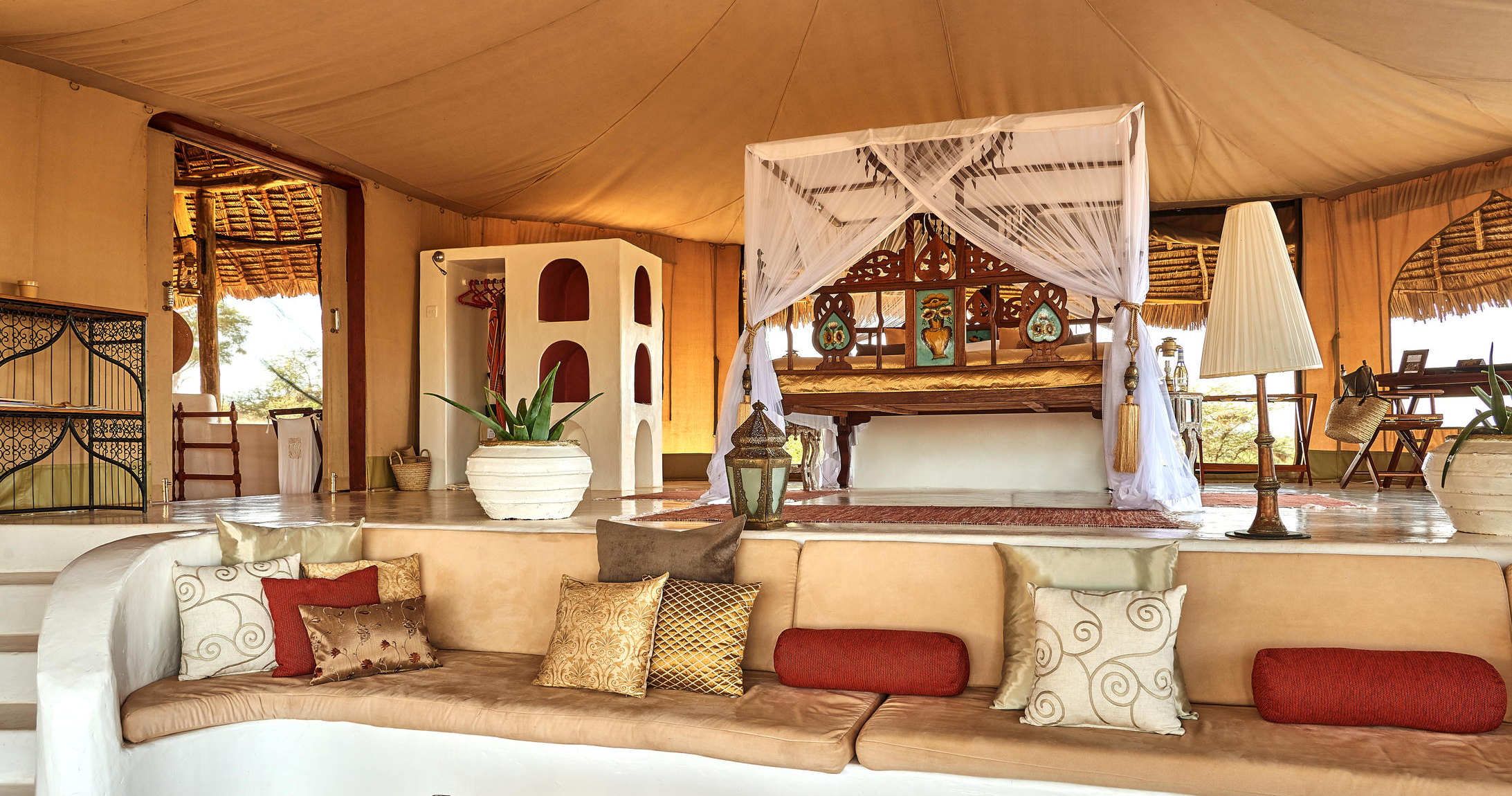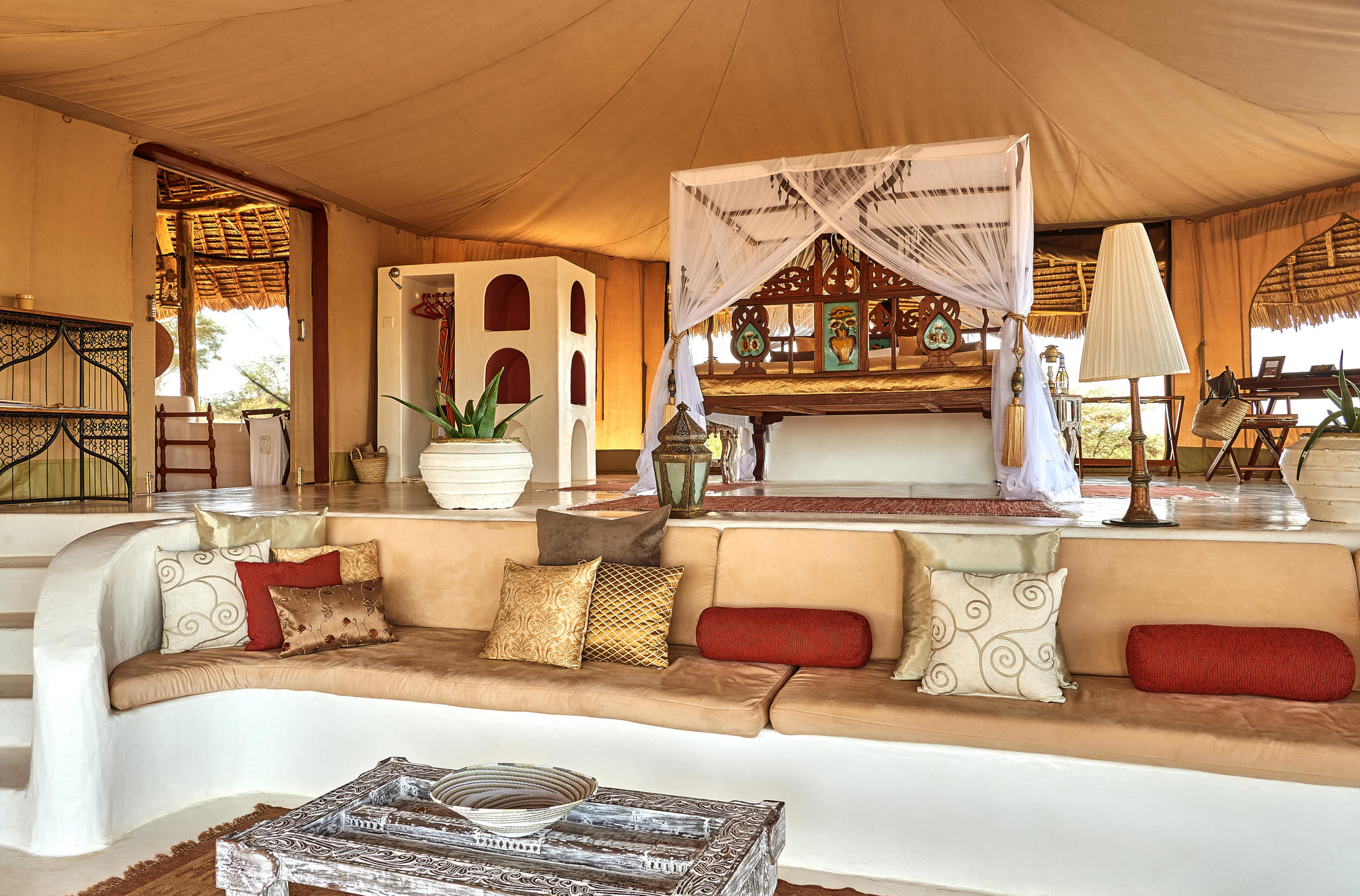 Denna unika och lyxiga tältcamp erbjuder 16 tält, varje med egen pool och enastående utsikt över Ewaso och Isiolo-floderna. De rymliga tälten är elegant inredda med egna badrum, bekväma sängar och terrass.