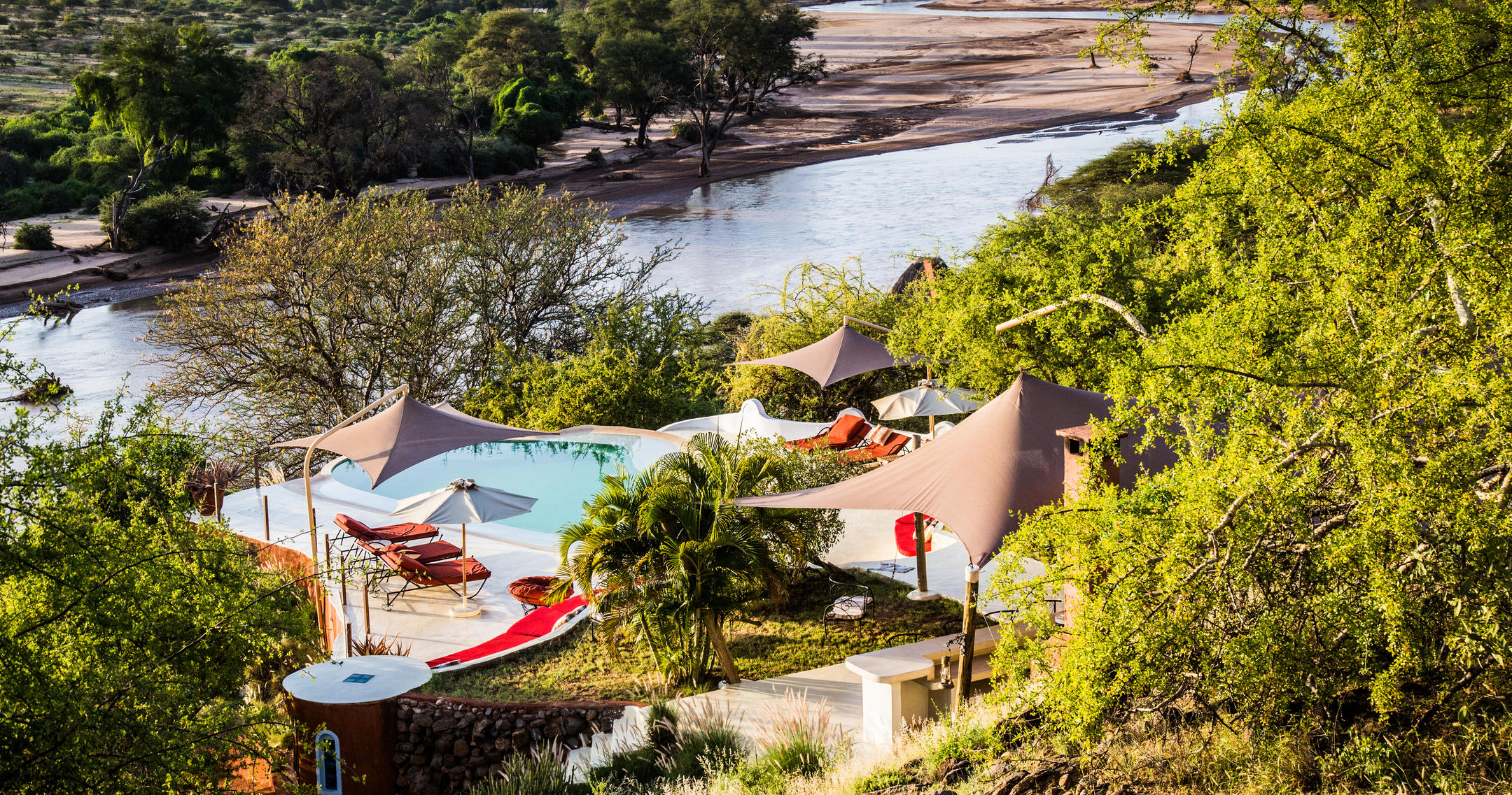 I hjärtat av det vidsträckta och torra landskapet i norra Kenya, omgivet av lavastenar och ökenklimat, ligger Surana Buffalo Springs. Den stora poolen är noggrant inbyggd i bergssidan och är perfekt för att svalka sig efter en spännande game drive.