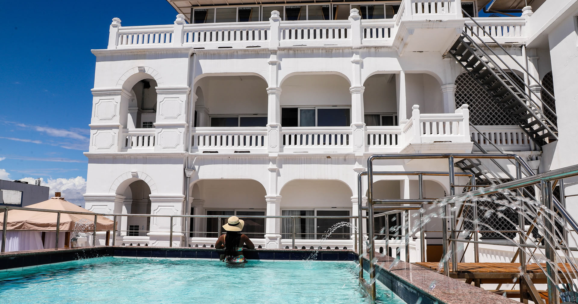 Hotellet har behållit sin ursprungliga charm och tar oss tillbaka till en era av förlorad elegans, där till och med kaffet fortfarande serveras från mässingskannor. Poolen ligger under två baobabträd och har utsikt över Indiska oceanen, en perfekt plats för en bra bok och en härlig lunch. Baren är en populär samlingsplats där färska ostron och kokosnötter serveras, drinkar kan avnjutas, och du kan lära känna lokalbefolkningen på Lamu och deras fascinerande swahilikultur.