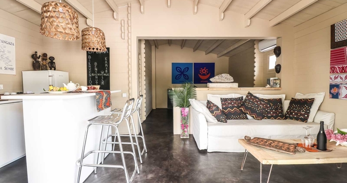 Här bor du i en mysig stuga i en tropisk trädgård med pool. Stugan har ett litet kök med kylskåp och spisplattor, luftkonditionering och egen veranda. Du har tillgång till grannhotellet Mwezis restaurang och strandområde.
