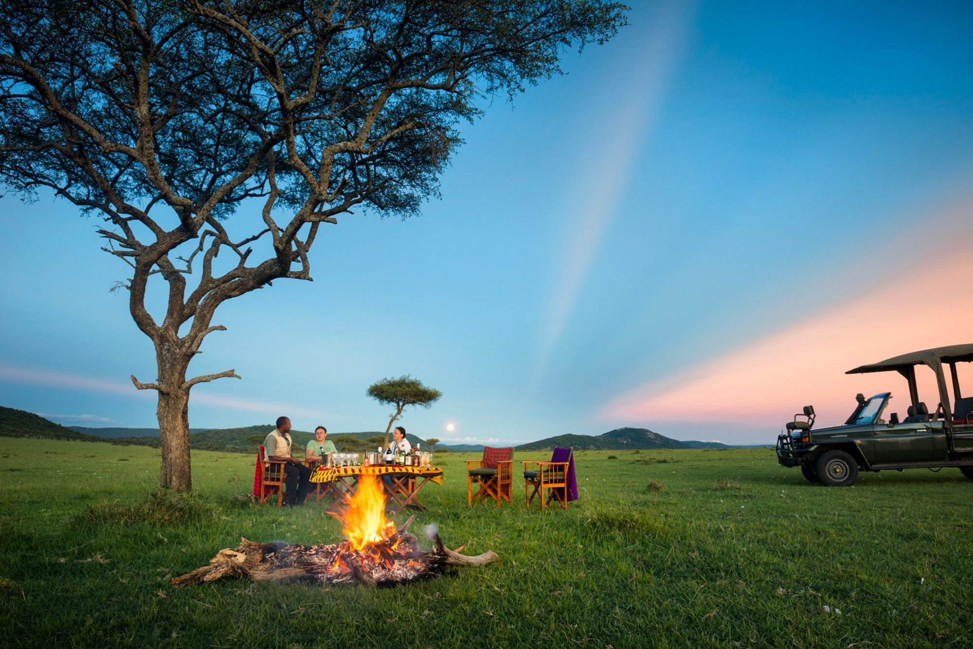 När mörkret sänker sig över savannen njuter du av en drink och lite snacks vid elden och kanske börjar de nattaktiva djuren krypa ut på Serengetislätten framför lägret? Ett livs äventyr väntar!