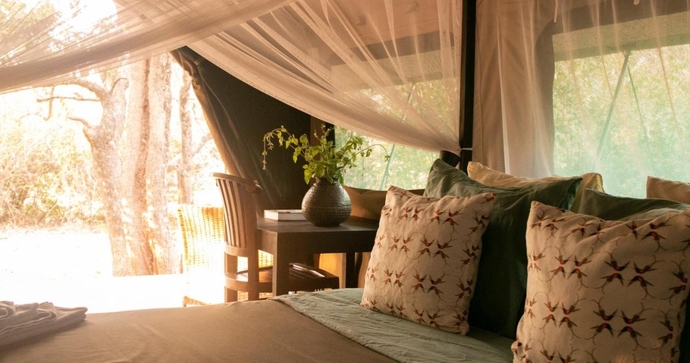 Boendet består av fyra lyxiga tältstugor, upphöjda på trädäck, vilket ger en fantastisk utsikt över lagunen och dess vilda djur. Varje tält har privata verandor, där du kan njuta av landskapet i fullständig avskildhet.