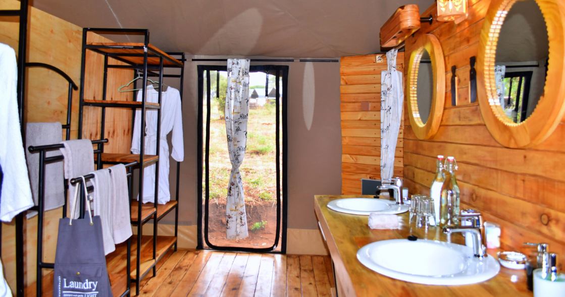 Alla tält har en uteplats, sovrumsdel, och eget badrum med dusch och toalett. Här kan du njuta av naturens lugn och närheten till parkens rika djurliv.