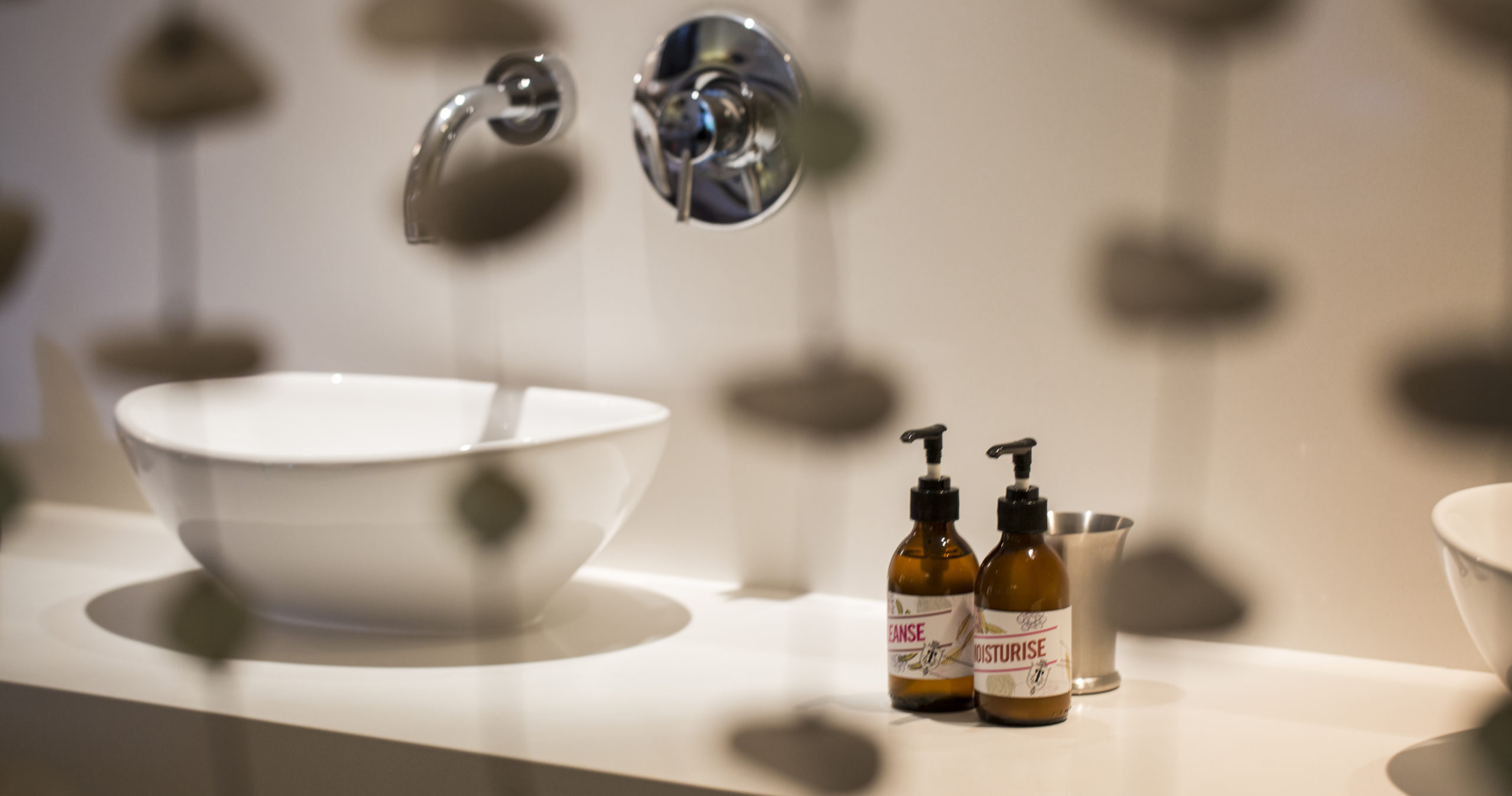 Varje svit har en extra lång säng (kingsize eller två enkelsängar), handgjord takfläkt, luftkonditionering och en privat balkong. Det öppna badrummet har en stor regndusch, fristående badkar, dubbla handfat och separat toalett med bidé.