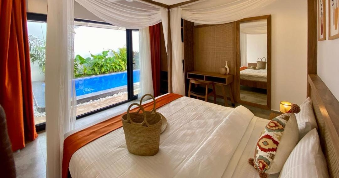 Rummen är omgivna av grönska och skapar en perfekt plats för avkoppling och vila. Den tropiska atmosfären kompletteras av inredningen, som är dekorerad i lokal stil och utrustad med handgjorda möbler.