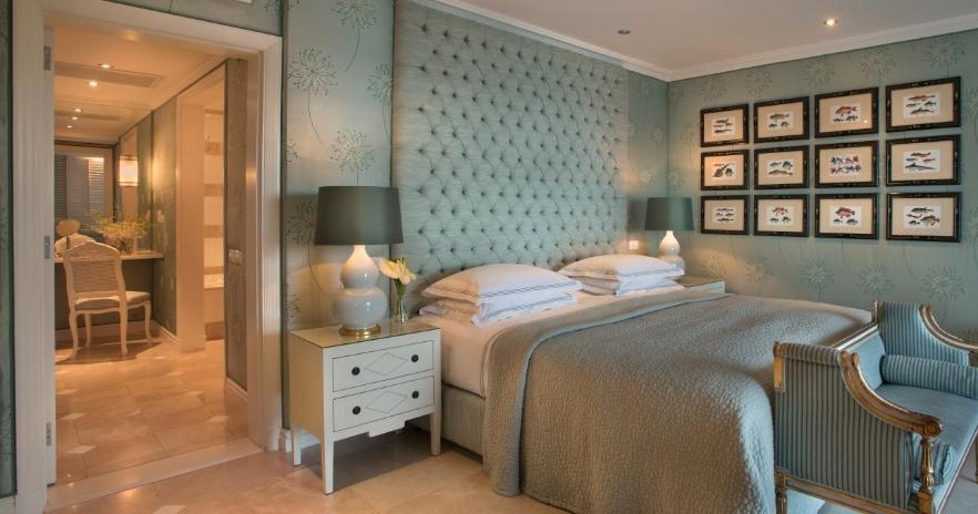 Varje svit har en extra lång säng (kingsize eller två enkelsängar), handgjord takfläkt, luftkonditionering och en privat balkong. Det öppna badrummet har en stor regndusch, fristående badkar, dubbla handfat och separat toalett med bidé.