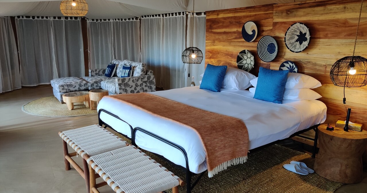 Boendet består av rymliga och modernt inredda tält, utrustade med ett privat badrum med varm dusch och toalett, bekväma sängar, mjuka lakan och traditionella afrikanska textilier. Söker du ett autentiskt och hemtrevligt boende är det här perfekt för dig.