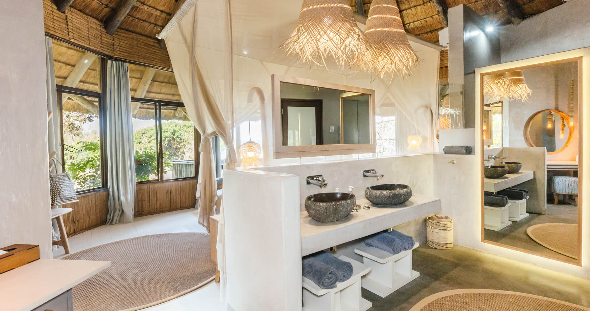 Lodgen har enbart 8 sviter, varav 2 familjesviter, vilket skapar en personlig upplevelse. Sviterna som är byggda av sten och strå är utrustade med privata pooler, hängmattor, badrum med panoramaduschar och egen veranda.