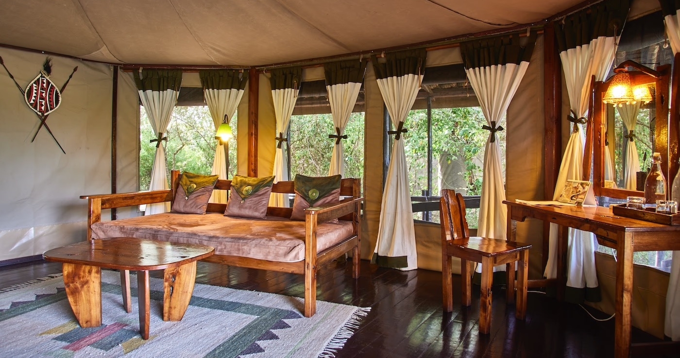 Campen består av nio tält, varav ett familjetält. Tälten är rymliga och här erbjuds privatliv på terrassen utanför där du kan sitta och höra djurlivet och se den mäktiga stjärnhimlen över Masai Mara.