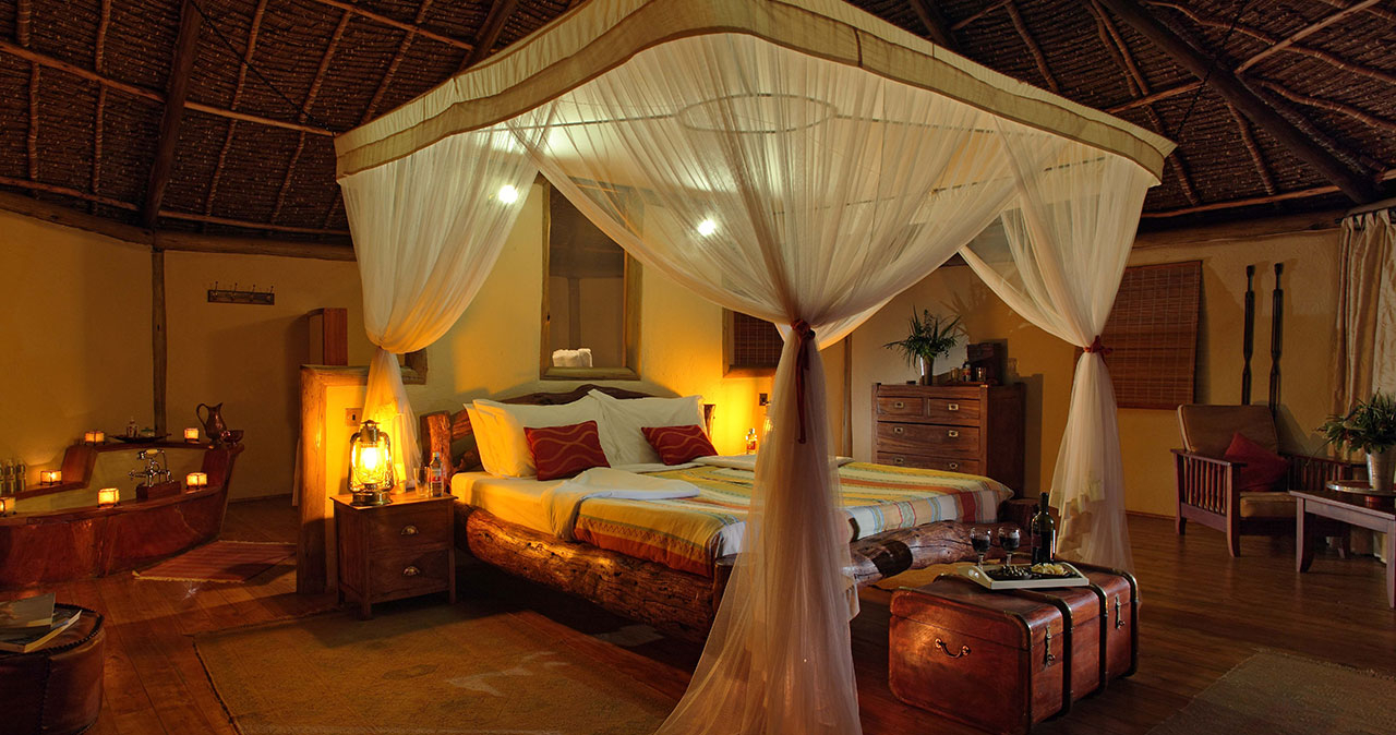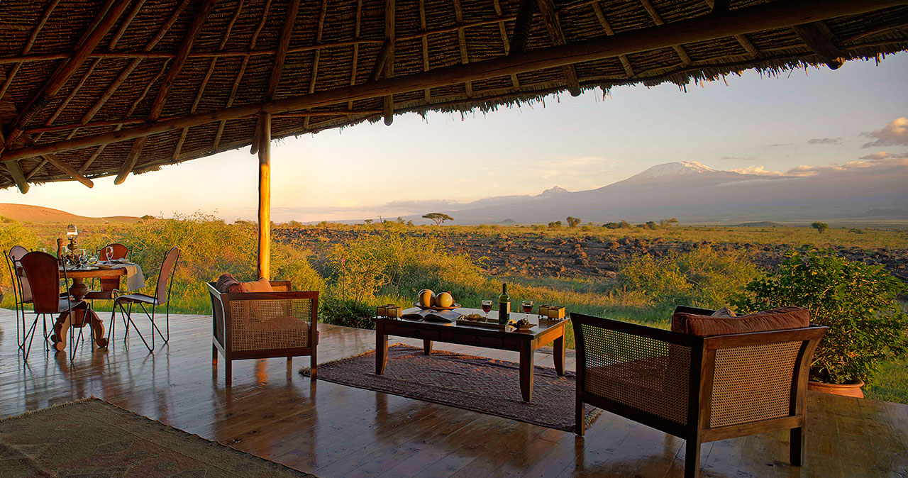 Oavsett vilken av de 13 stugorna du bor i har du ståtlig utsikt över Kilimanjaro och förutom safari i toppklass erbjuds bland annat pool, god mat och en mysig bar.