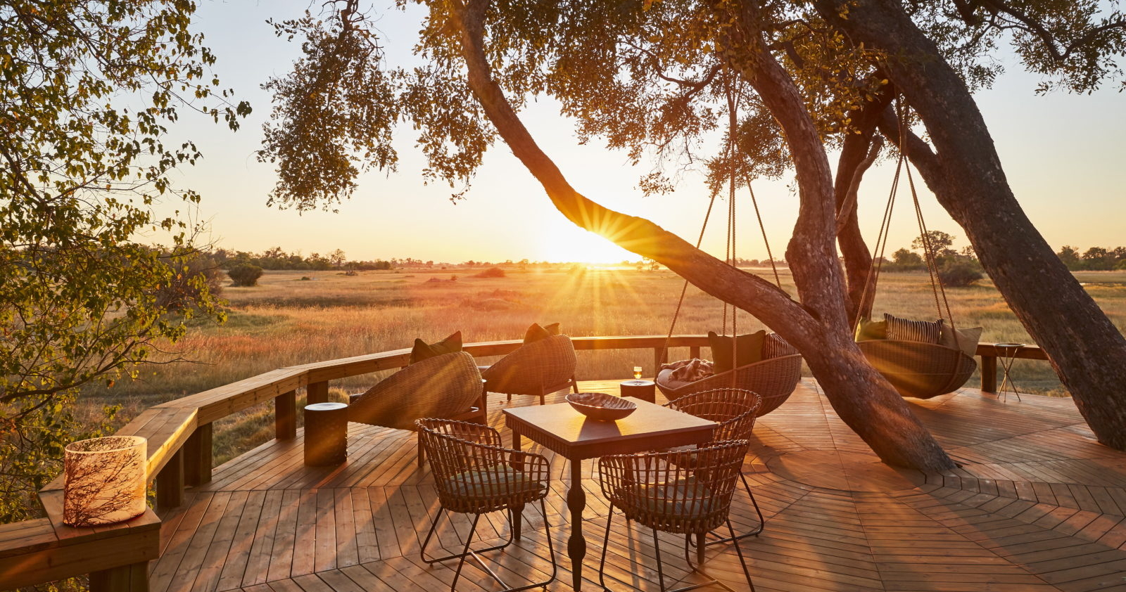 Utforska Okavangodeltat eller luta dig tillbaka och njut av utsikten och lugnet, antingen från poolen eller från din privata balkong. Kvällarna avslutas med middag under stjärnhimlen och vid den öppna elden. En vistelse du sent kommer glömma.