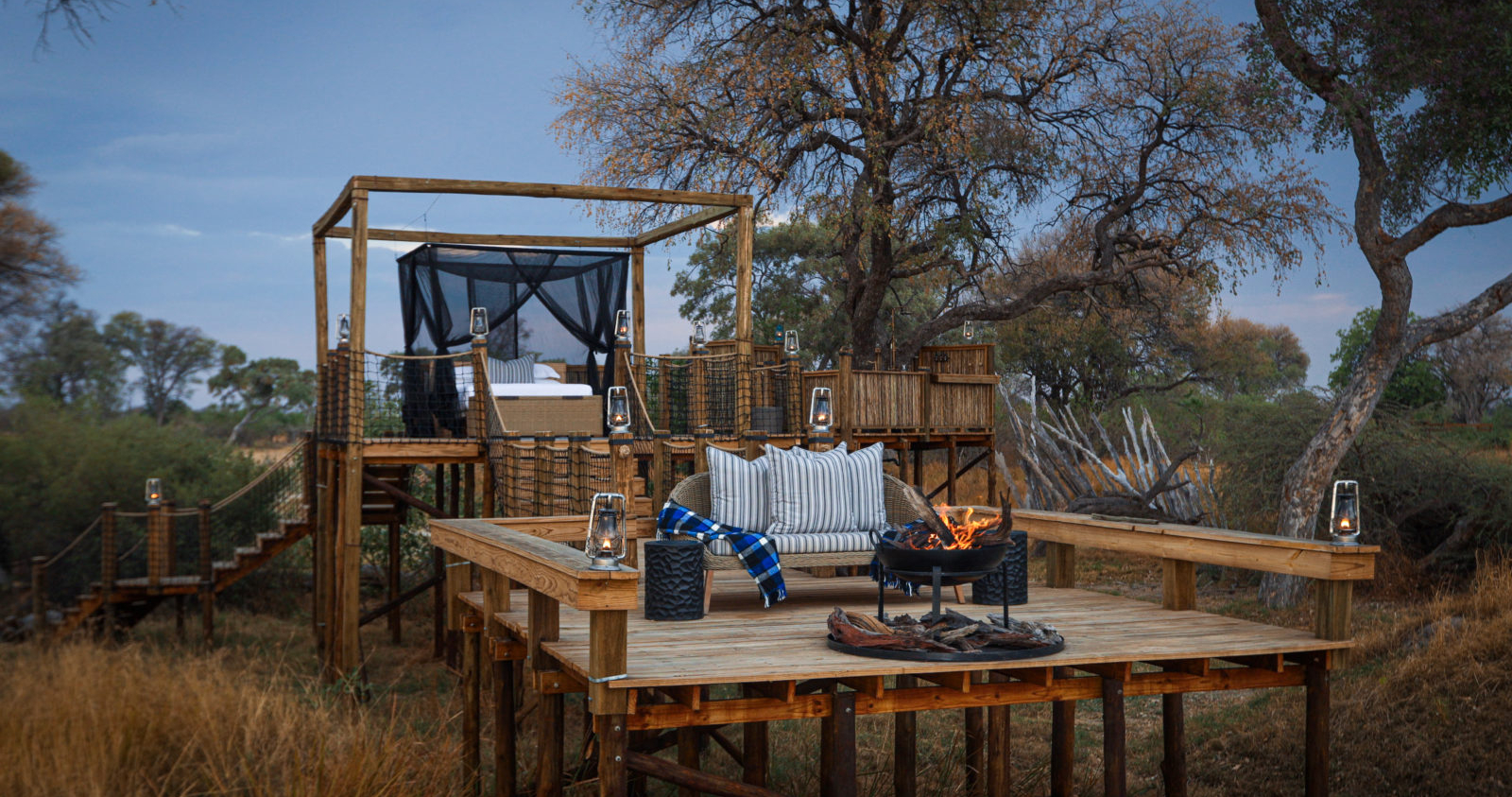 Mokolowane Camp, beläget i Okavangodeltat, erbjuder en exklusiv och intim safariupplevelse med sina sju trädhus belägna vid Matsebifloden. Denna charmiga camp är perfekt för dig som söker ett avlägset boende och ett djurrikt äventyr.