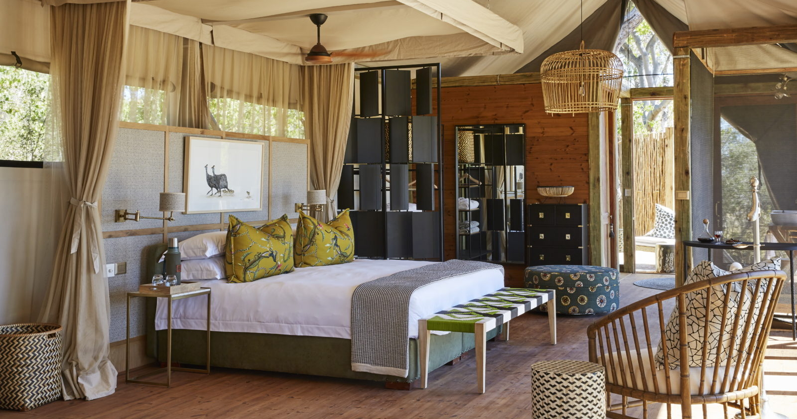 Campens design och inredning återspeglar en elegant samtida stil med inslag av lokal kultur och tradition, vilket skapar en autentisk och lyxig atmosfär. Med endast 10 eleganta sviter och den exklusiva Geoffrey Kent-sviten, som rymmer upp till sex gäster, erbjuder campen en intim och personlig safarivistelse.