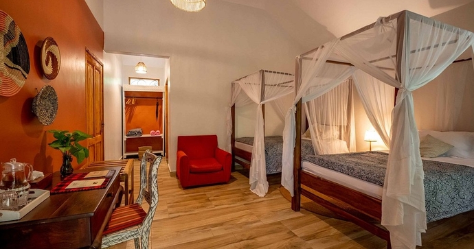 Katambuga House erbjuder en exklusiv vistelse i Arusha med sin koloniala charm och moderna komfort. Här kan du njuta av utsökta måltider och avkoppling vid poolen, med utsikt över det frodiga landskapet. Varje rum är rymligt med privat balkong och moderna bekvämligheter.