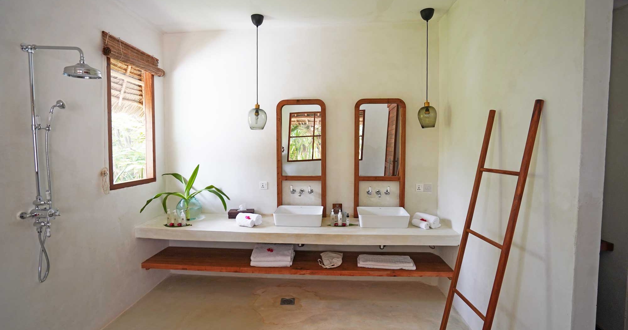 De erbjuder exklusiva villor med privat pool, rymliga uteplatser och modern inredning i zanzibariska influenser. Ett prisbelönt spa, en gourmetrestaurang med lokala och internationella rätter, samt en takbar med panoramautsikt över Indiska oceanen.