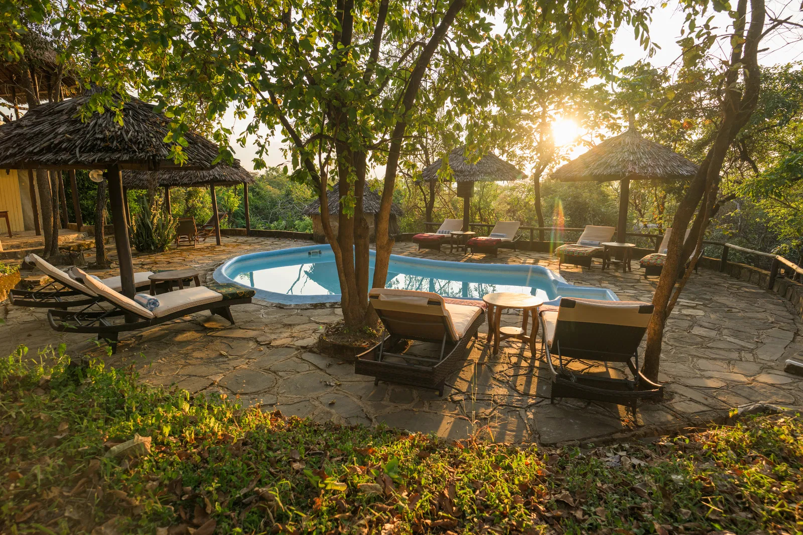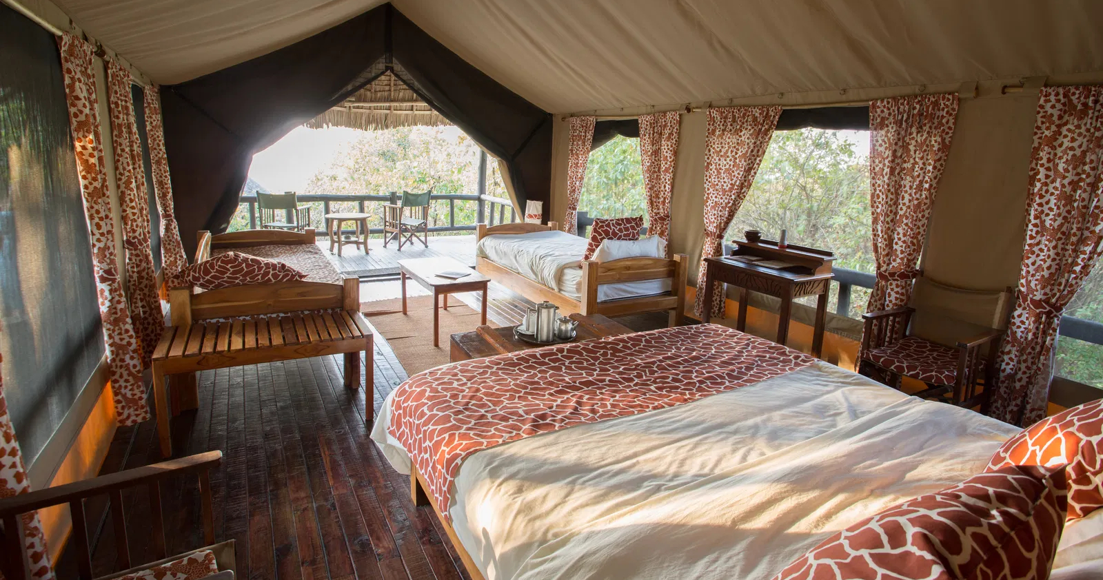 Lodgen består av rymliga och bekväma safaritält som är upphöjda på träplattformar för att smälta in i den omgivande naturen. Varje tält är utrustat med bekväma sängar, eget badrum med dusch och toalett samt en privat veranda där gästerna kan koppla av och njuta av den storslagna utsikten över parken. Lodgens mysiga loungeområde är en perfekt plats för avkoppling, och det finns även en utomhuspool där gäster kan svalka sig under den varma afrikanska solen.