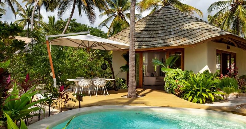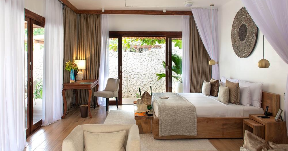 De erbjuder exklusiva villor med privat pool, rymliga uteplatser och modern inredning i zanzibariska influenser. Ett prisbelönt spa, en gourmetrestaurang med lokala och internationella rätter, samt en takbar med panoramautsikt över Indiska oceanen.