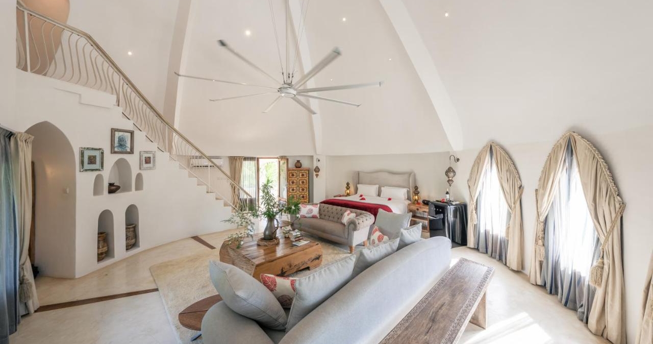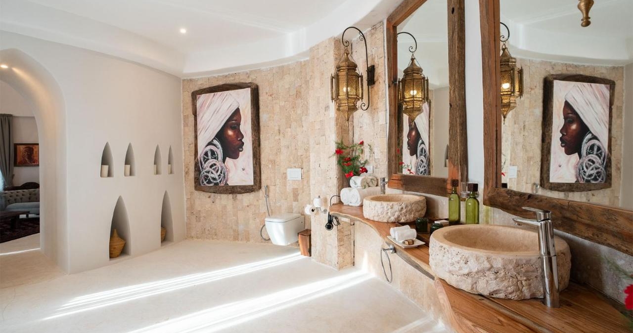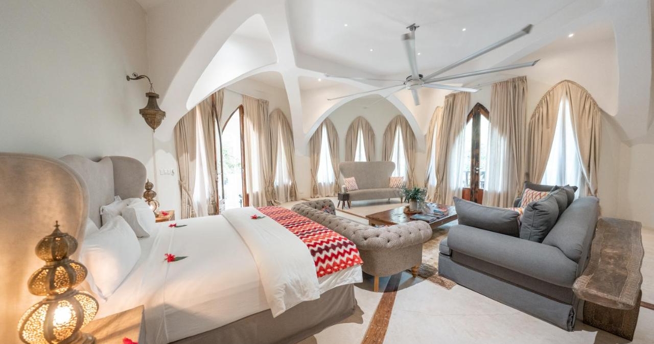De erbjuder exklusiva villor med privat pool, rymliga uteplatser och modern inredning i zanzibariska influenser. Ett prisbelönt spa, en gourmetrestaurang med lokala och internationella rätter, samt en takbar med panoramautsikt över Indiska oceanen.